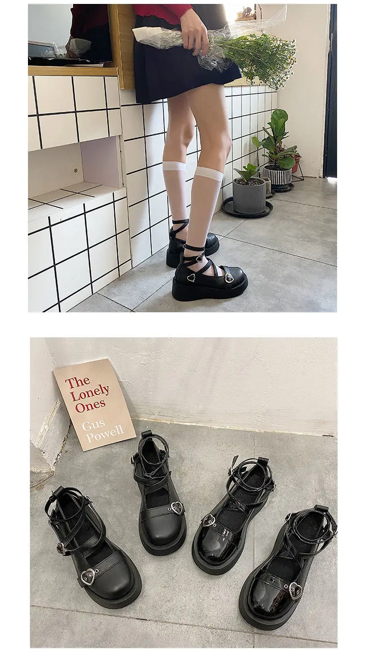 Лоферы женские из лакированной кожи, с ремешком на щиколотке, в готическом стиле