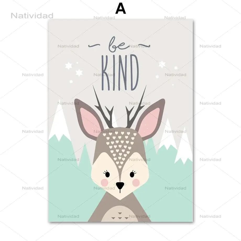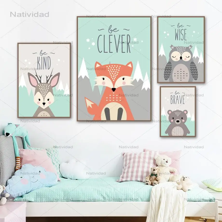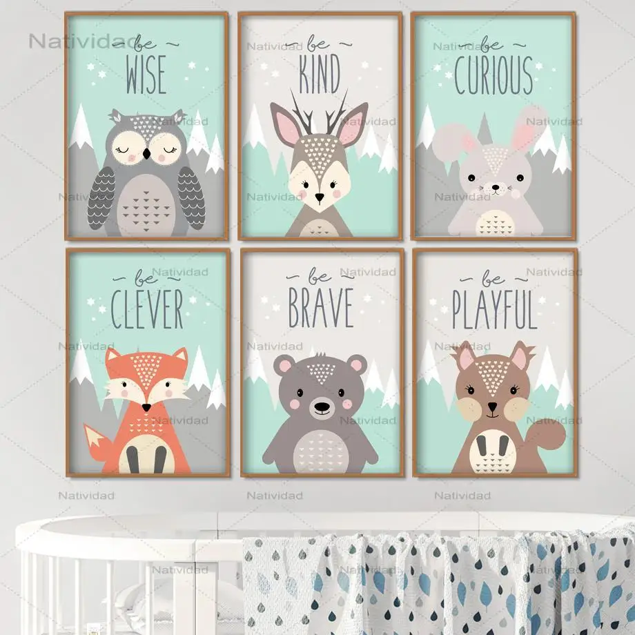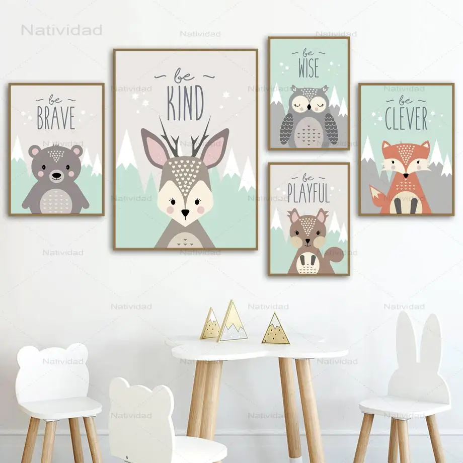 Современная Картина на холсте сова кролик медведь лиса олень детская Настенная картина Мультяшные плакаты и принты настенные картины для декора гостиной