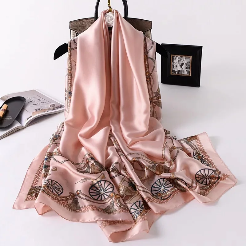 Шарф Шелковый женский, популярная бандана 180 х90 см, пляжный хиджаб, шаль с большим принтом, Пляжное парео, шарф, лето 2021