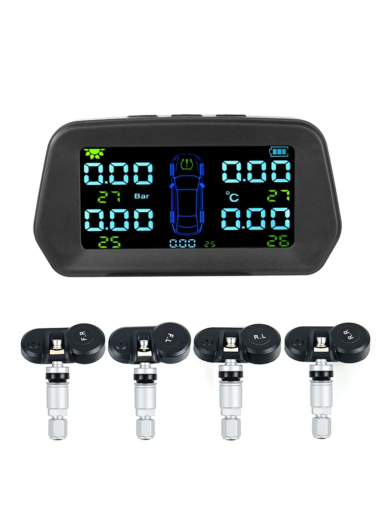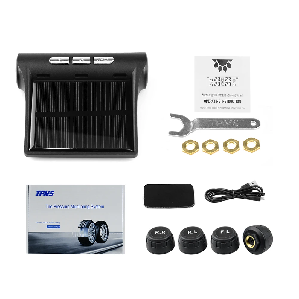 Состав солнечной TPMS такой же, как у обычных TPMS (система контроля давления в шинах), которая состоит из солнечного TFT экрана, принимающего дисплей и четырех датчиков давления/излучателей. В качестве мощной панели генерации энергии долгий срок службы, чтобы обеспечить в любое время зарядку, так что прием монитора питания более надежный и долговечный; даже в условиях отсутствия солнечного света в темной среде, дождя и снега погодные условия по-прежнему могут служить более 15 дней, есть интерфейс USB зарядного устройства, Устройство с двойной зарядной системой обеспечивает постоянный срок службы устройства.