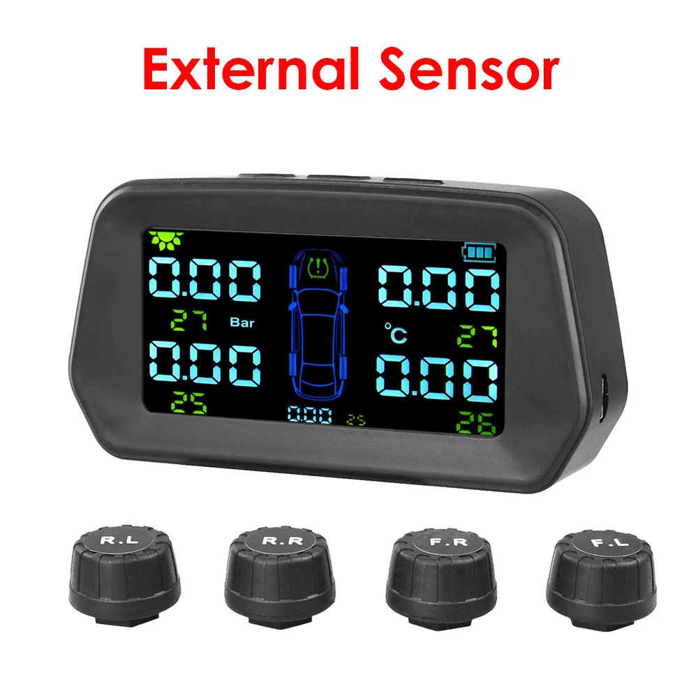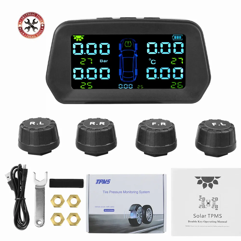 Лидер продаж 2021 новая версия шины Давление автомобиль с питанием от солнечных батарей система контроля давления в шинах мониторинга Системы с 4 Датчики парковки для автомобилей SUV Температура Предупреждение