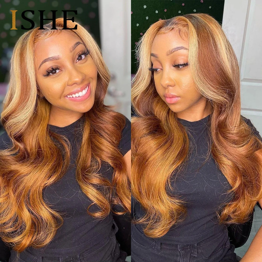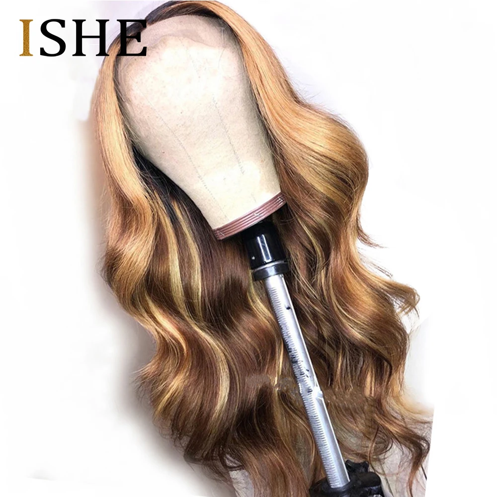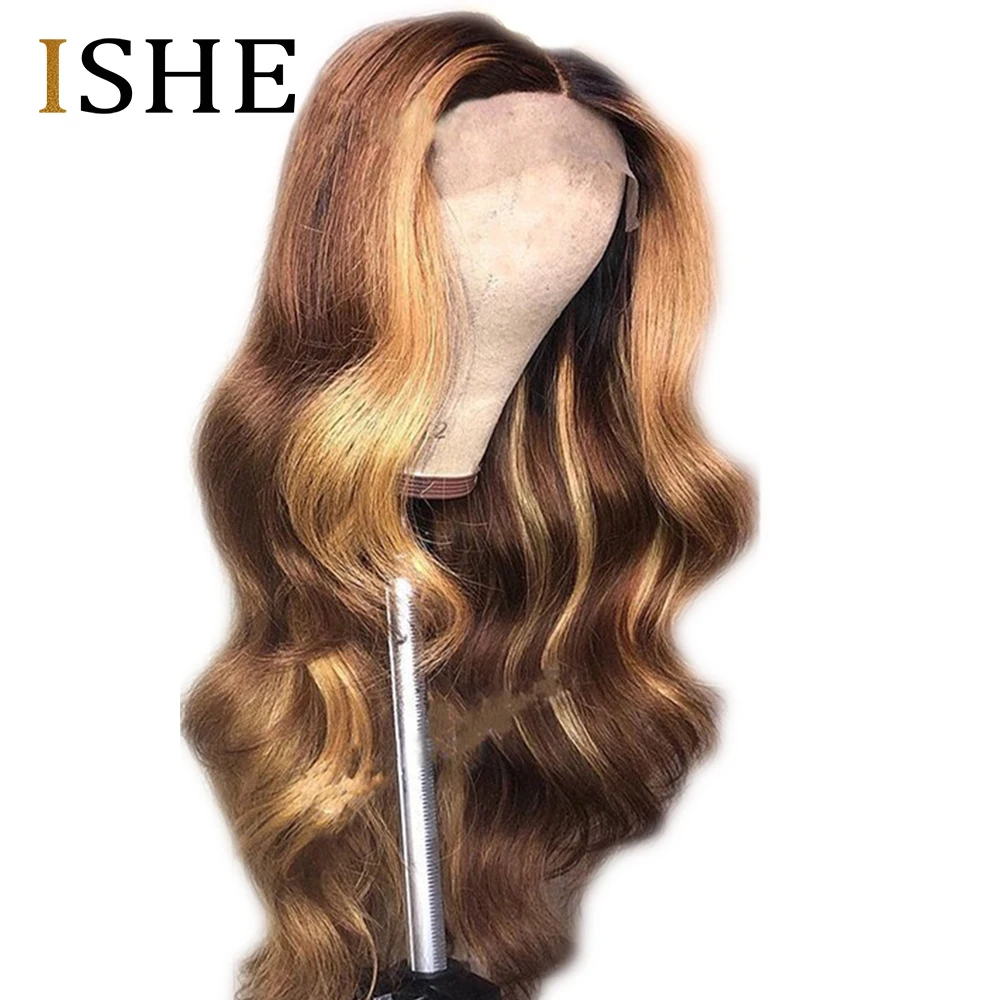 Выделите часть кружево парики из натуральных волос на кружевной Мёд светлые волосы тело волна волос парик бразильский эффектом деграде (переход от темного к коричневые волосы, натуральные предварительно вырезанные T кружевные детали для Для женщин
