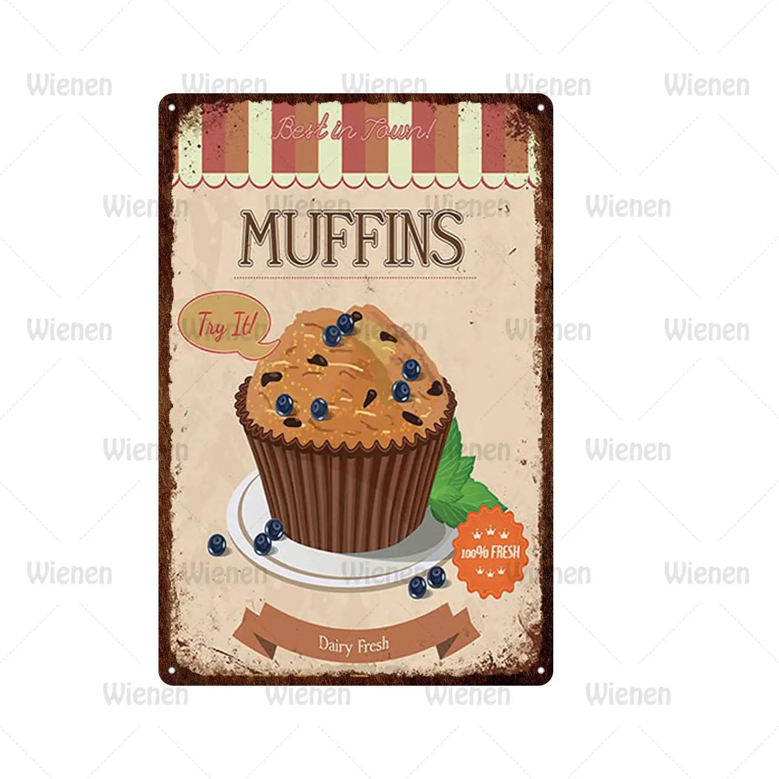 Винтажный металлический постер для кексов в стиле ретро с изображен...