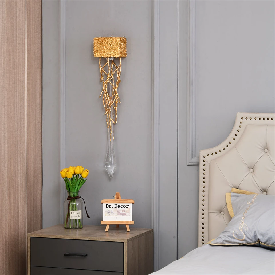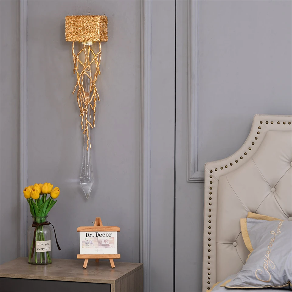 Современные светодиодсветодиодный хрустальные настенные светильники, комнатное украшение для спальни, прикроватного столика, коридора, входа, светодиодные Настенные светильники для освещения гостиной