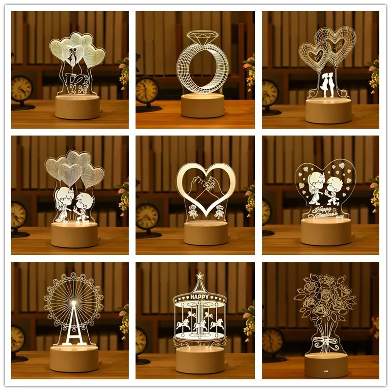 Акриловый светодиодный ночсветильник 3D, романтическая декоративная...