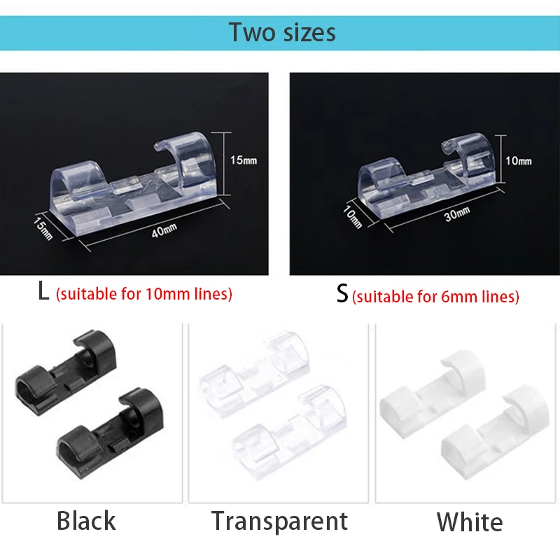 Идеально подходит для подвешивания избыточного электрического кабеля и вилки.Легко организовать кабели и вилки.Можно прикрепить на стену, плитку, стекло и другую гладкую поверхность.Помогает убирать неприглядный грязный телевизор, DVD, ПК провода и кабели.Используйте органайзер для кабельных зажимов, чтобы ваши кабели были аккуратными и организованными.Приклейте клей для нанесения на нужную поверхность.Тип: кабельные зажимыМатериал: АБС-пластикЦвет: черный, белый, прозрачныйКоличество: 16/20 штПодходит для:S: диаметр провода в пределах 6 ммL: диаметр проволоки в пределах 6-10 ммХарактеристики: простой в использовании, линейный Органайзер, прочный