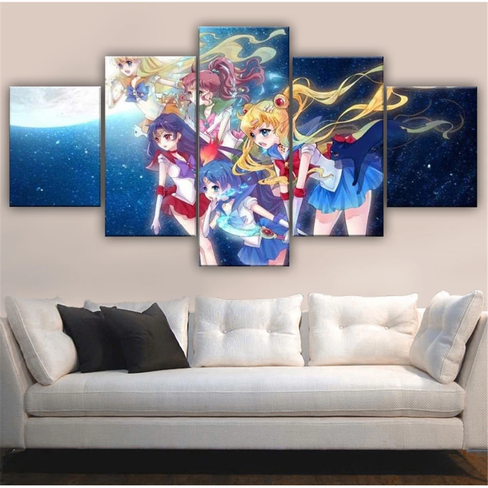 5 шт., Декоративные плакаты на холсте с изображением Сейлор Мун