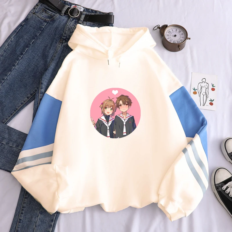 Толстовки с капюшоном для карт сакуры для мужчин и женщин, свитшоты в стиле пэчворк в стиле хип-хоп, тонкие бархатные теплые худи в стиле Харадзюку С аниме, спортивный костюм
