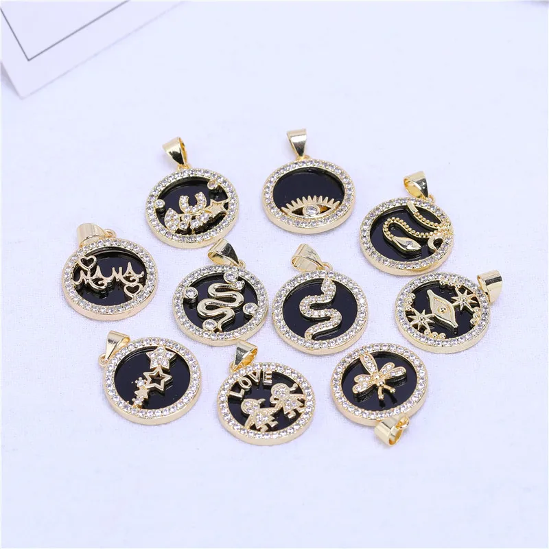 Модные черно-белые подвески-монеты, подвески из меди с инкрустацией фианитами, подвески для ювелирных изделий, аксессуары с изящными звездами
