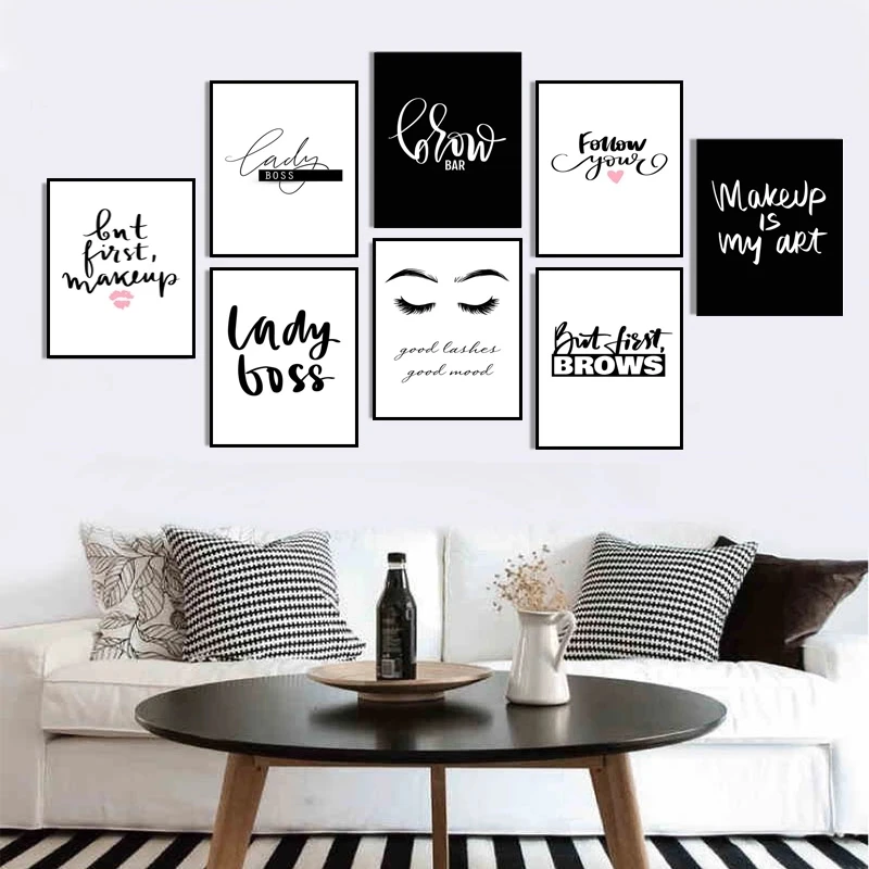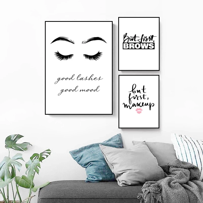 Художественный постер с цитатами для макияжа, Настенная картина с хорошими ресницами для салона красоты, Картина на холсте для леди, босса, настенные картины для гостиной, домашний декор