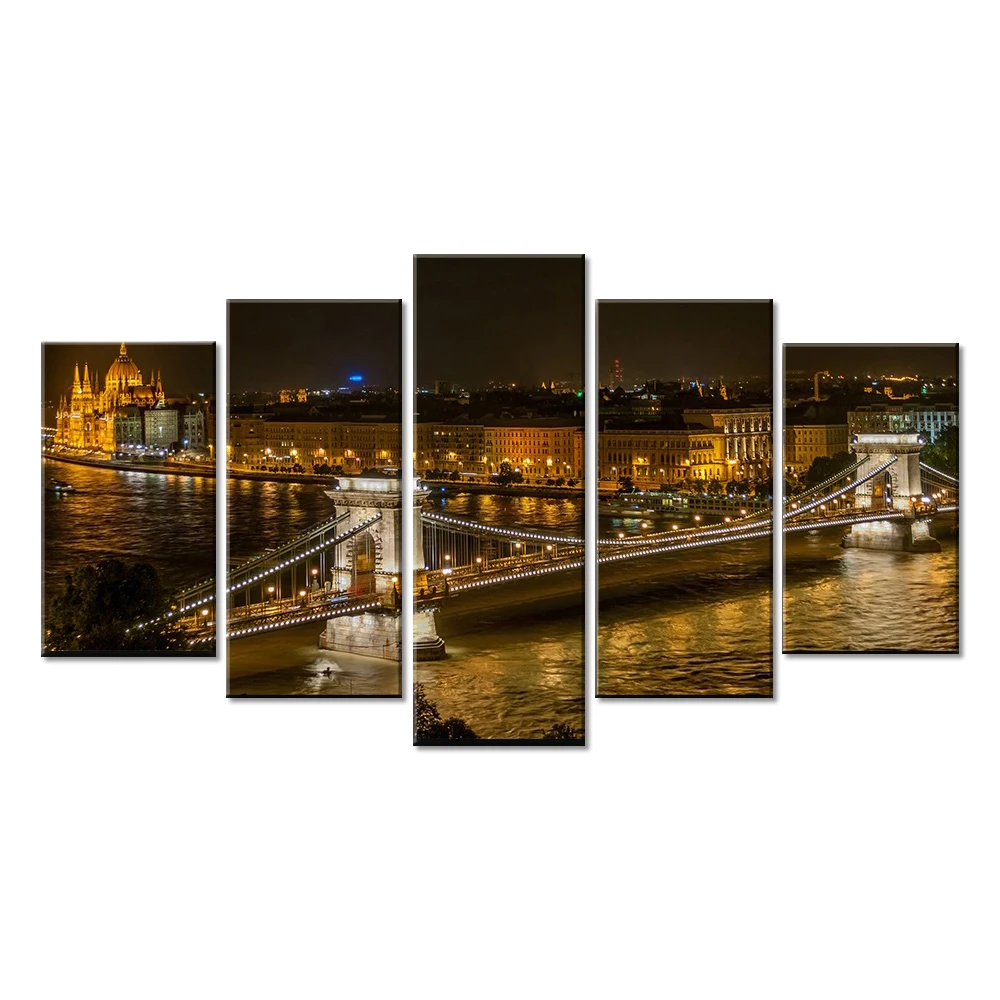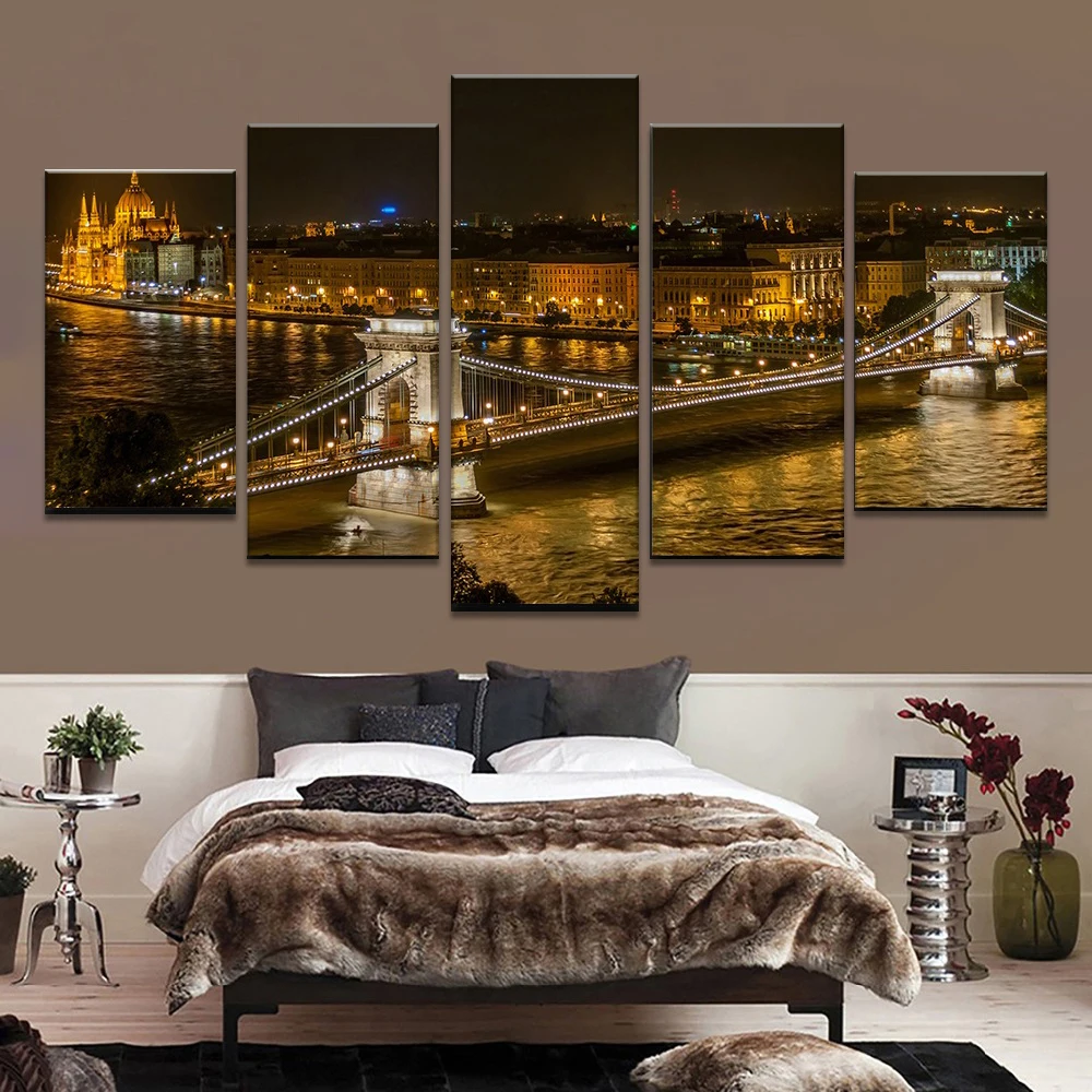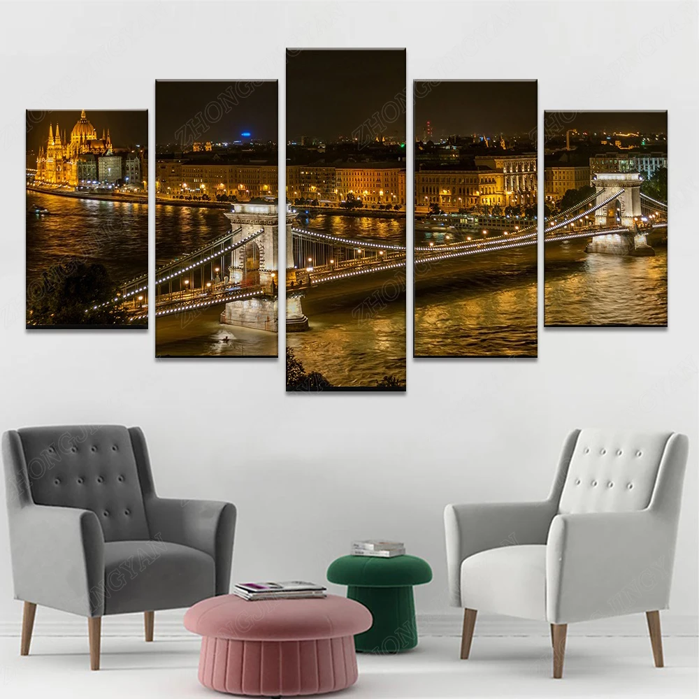 Модульные винтажные картины ночного видения, 5 панелей, венгрийский город, домашний декор, картины на холсте, мост, настенное искусство для гостиной, HD-печать