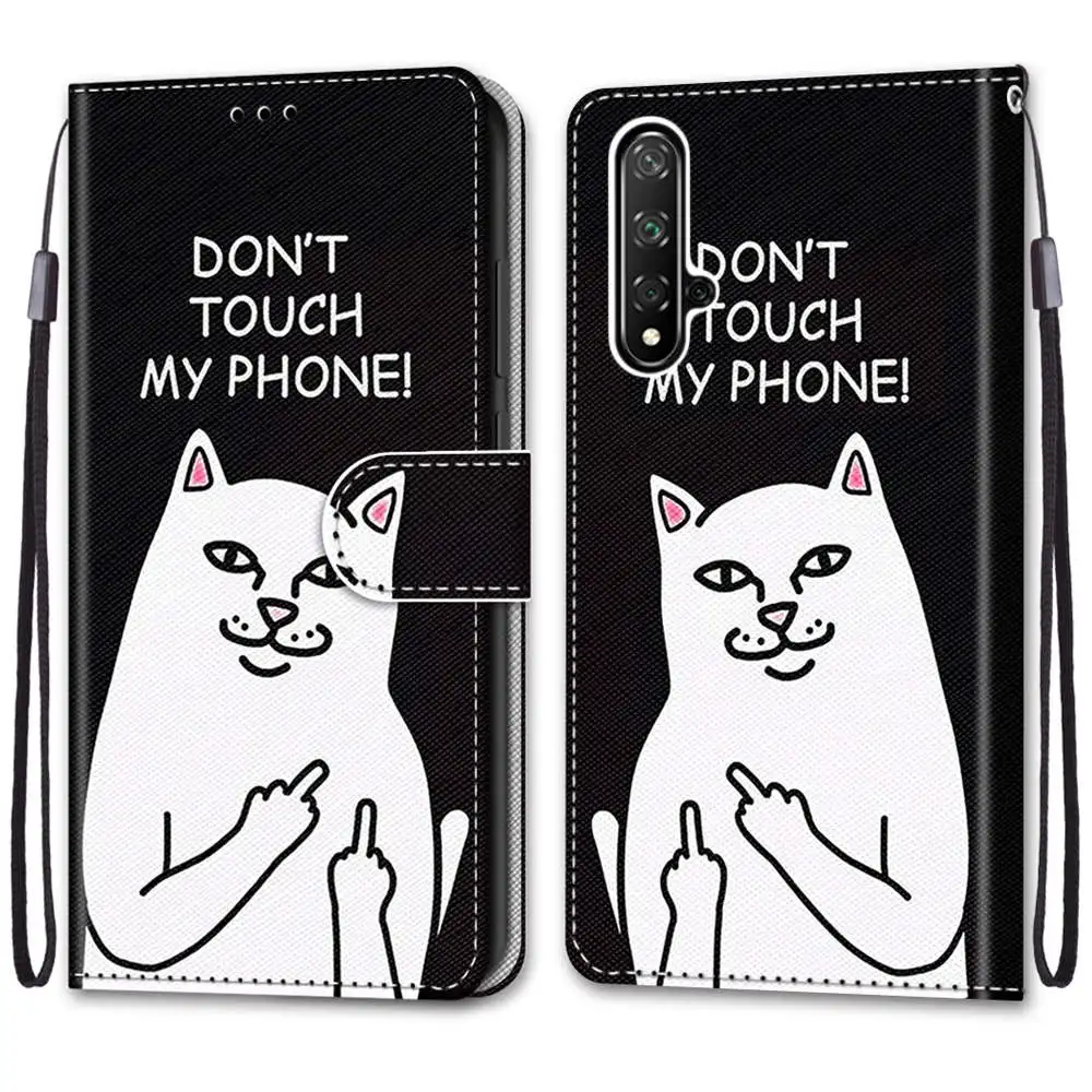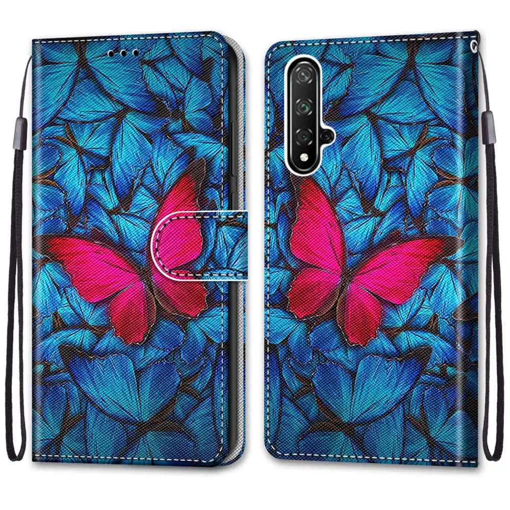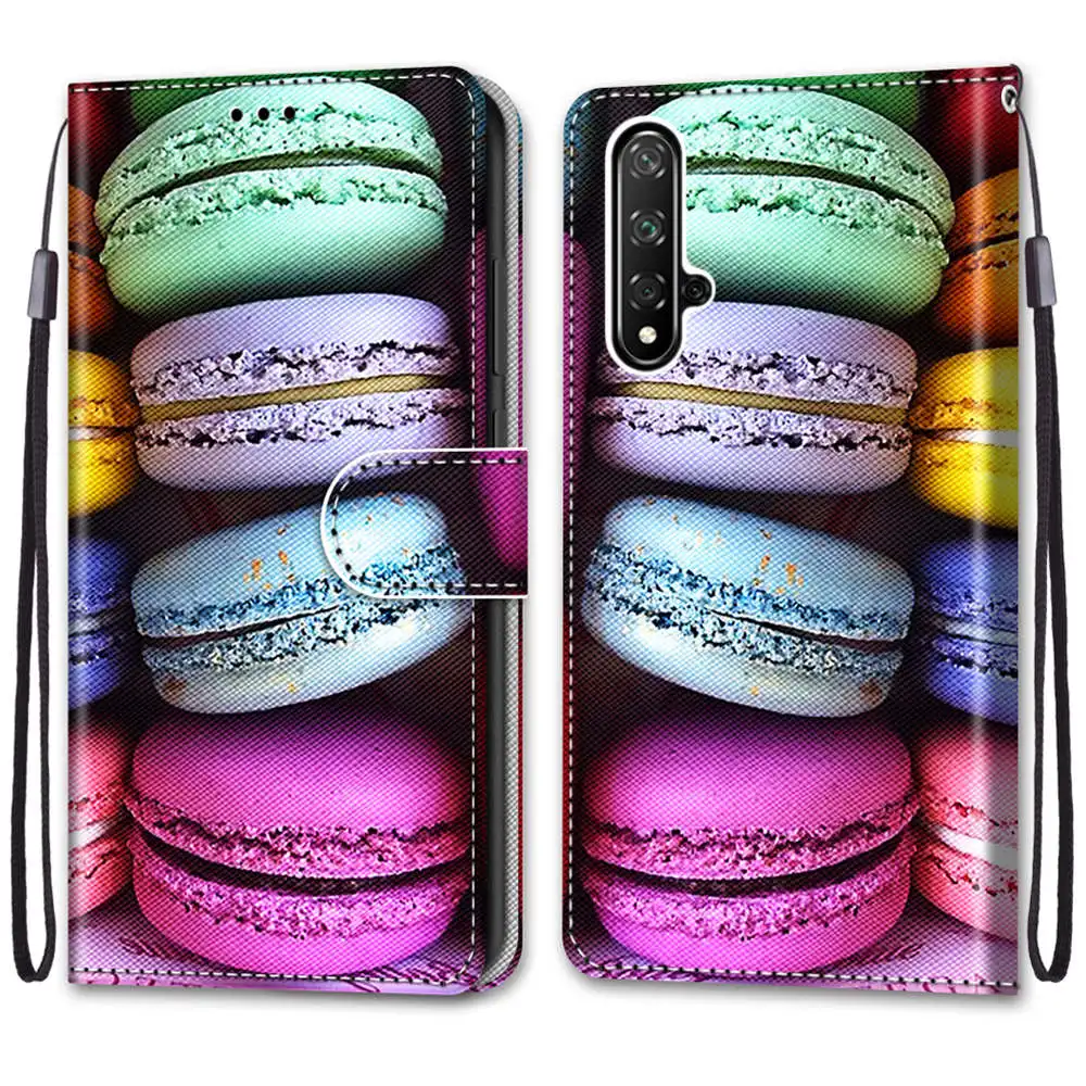 Чехол-книжка для Honor 20, 7X, Play, 8A, 8X, V10 Lite, Nova 5T, Y6 Prime 2019, кожа, с принтом