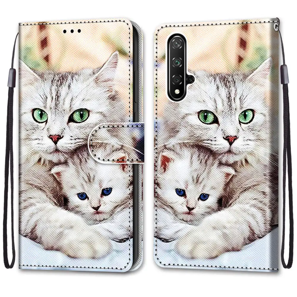 StyleAnimal Cat Flower pattern Wallet Flip Case For Honor 20 20s