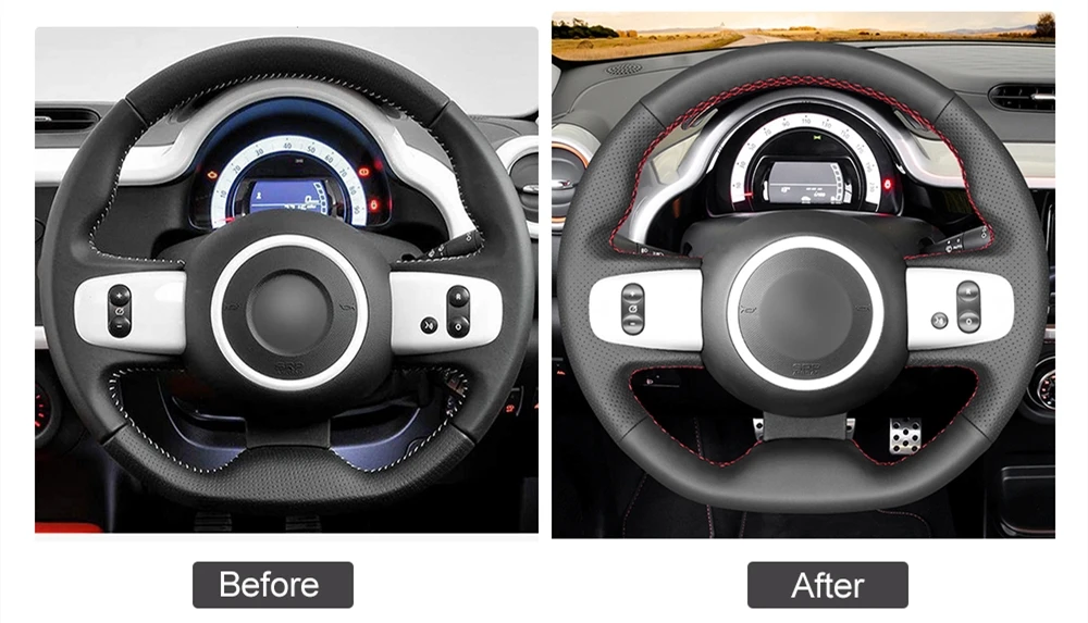 Черная искусственная кожа Чехол рулевого колеса автомобиля для Renault Twingo 3 2014 2015 2016 2017 2018 2019 2020
