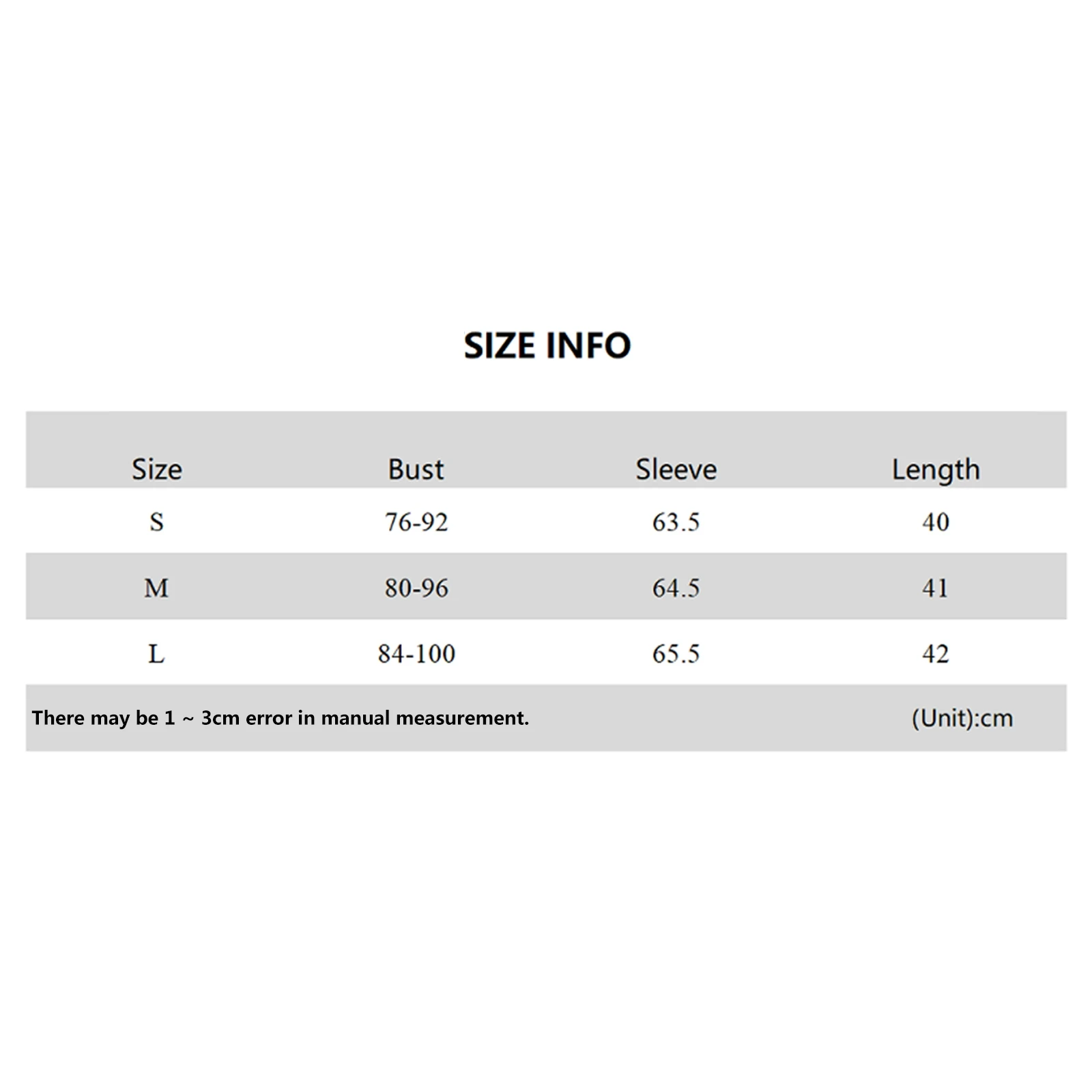 2. Из-за ручного измерения разница в 2-3%. Пожалуйста, внимательно изучите таблицу размеров перед покупкой товара.