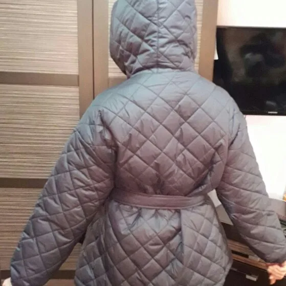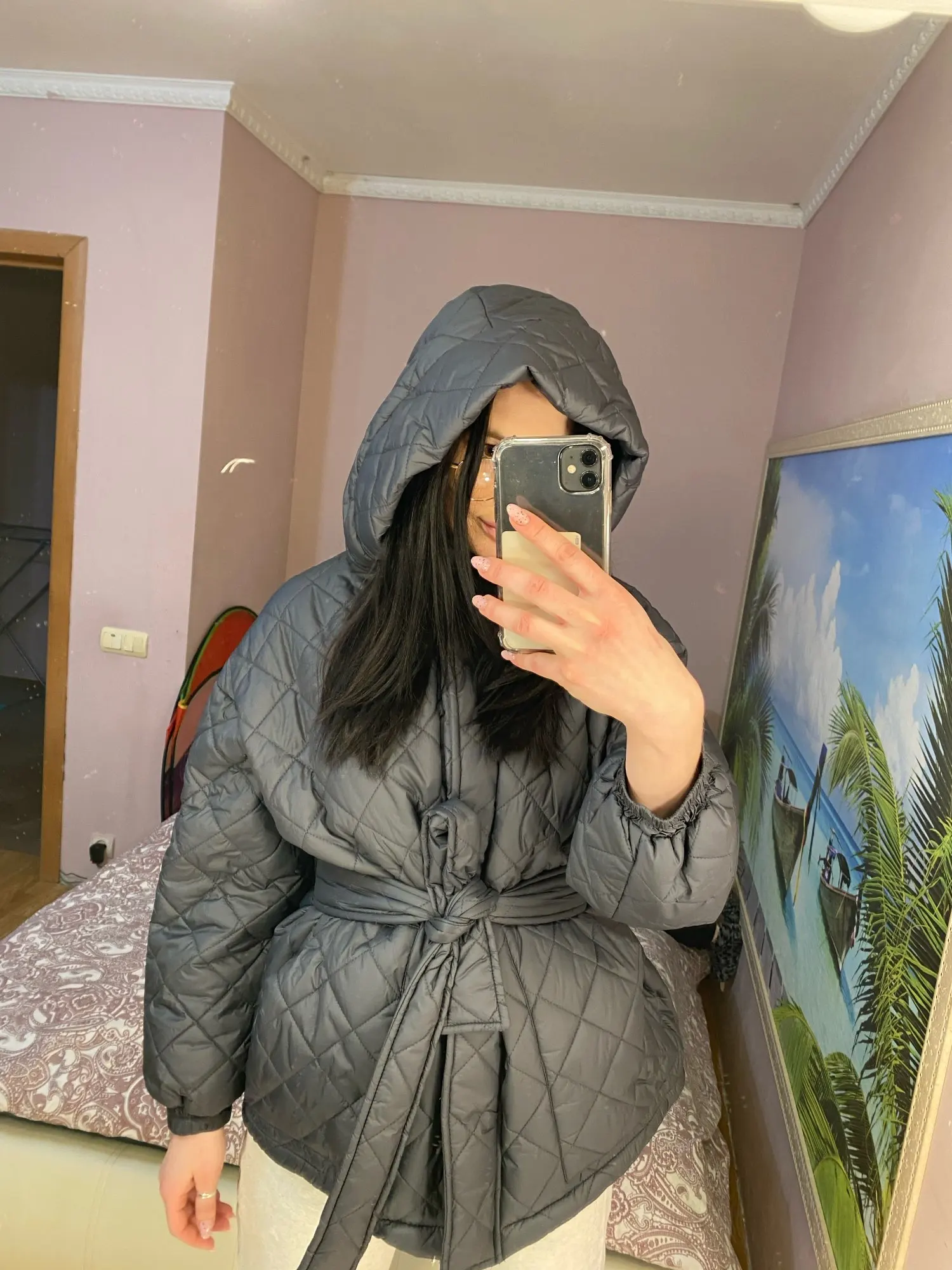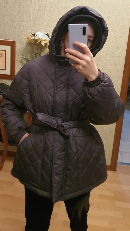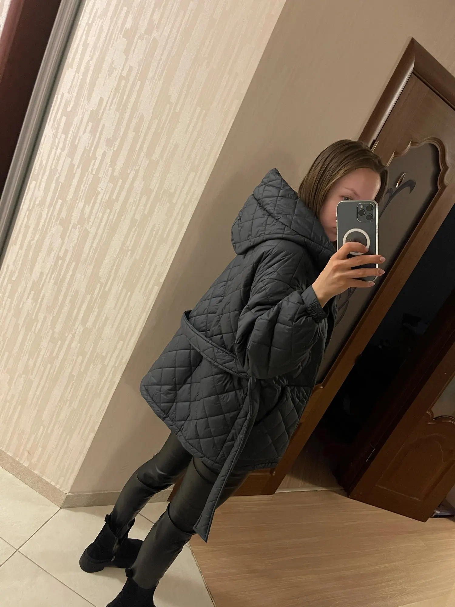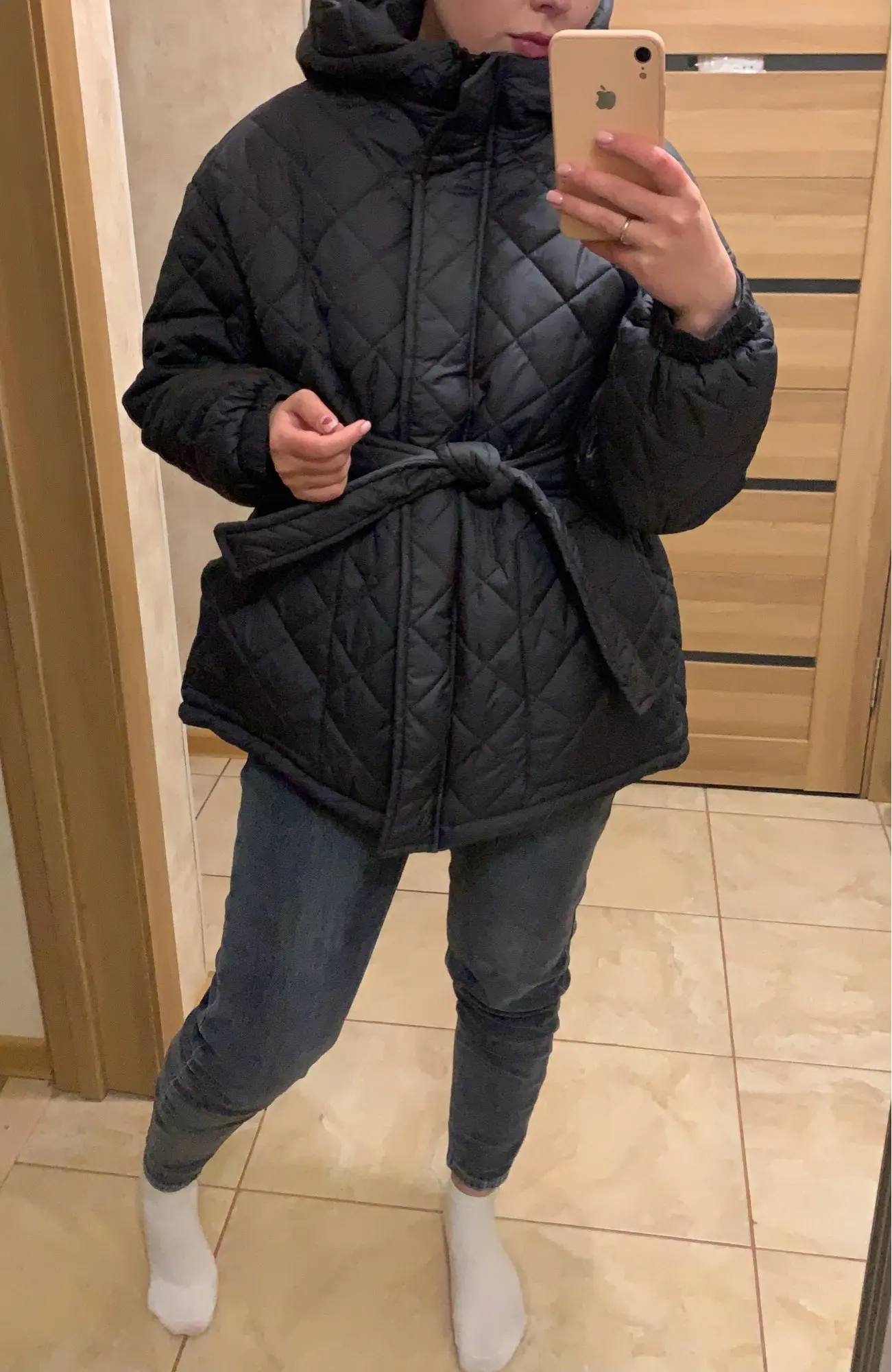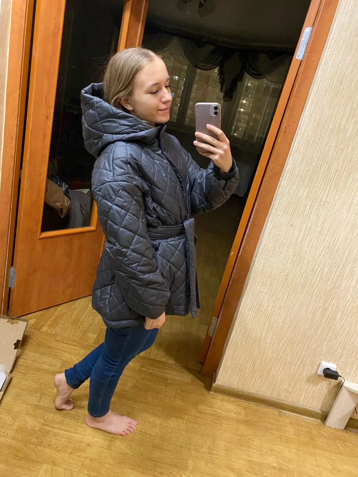 Куртка хороша, как у всех на фото. Но очень широка. На свой 42/44 прям совсем, пояс конечно спасает но если сильно затянуть низ весь топорщится. А ткань куртки мягкая. Я даже удивилась. На фото продавца кажется что ткань плотная и такая как будто не мнётся, а на деле мягкая как тряпка. Но смотрится норм. Заказывала когда ещё не так популярна куртка была, ждала 2 недели в Москву