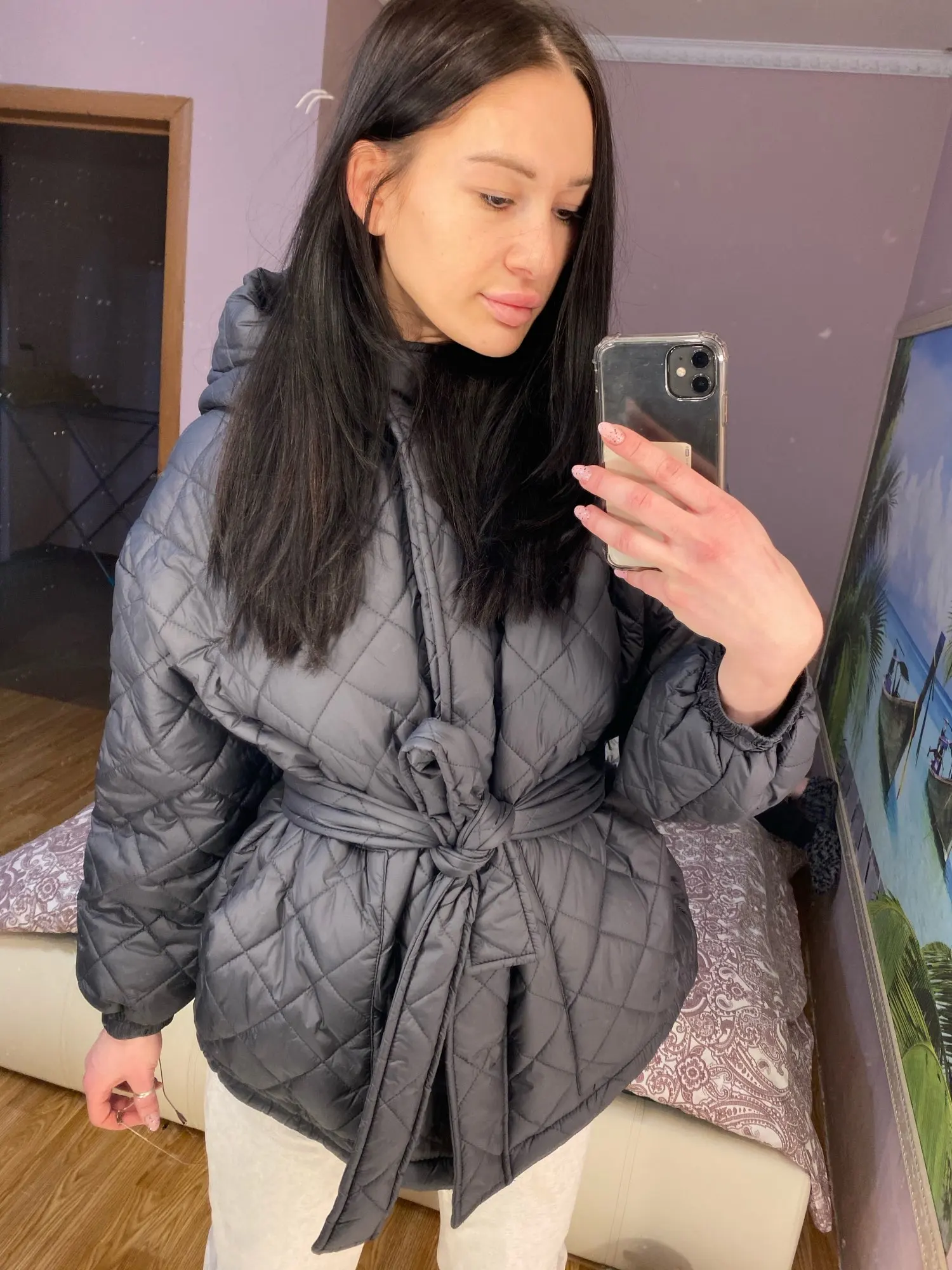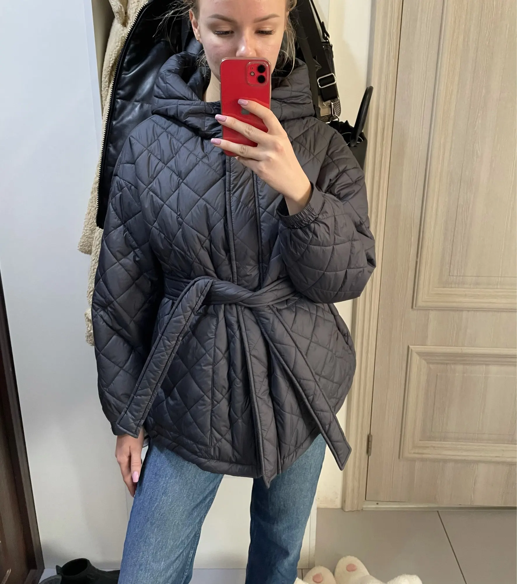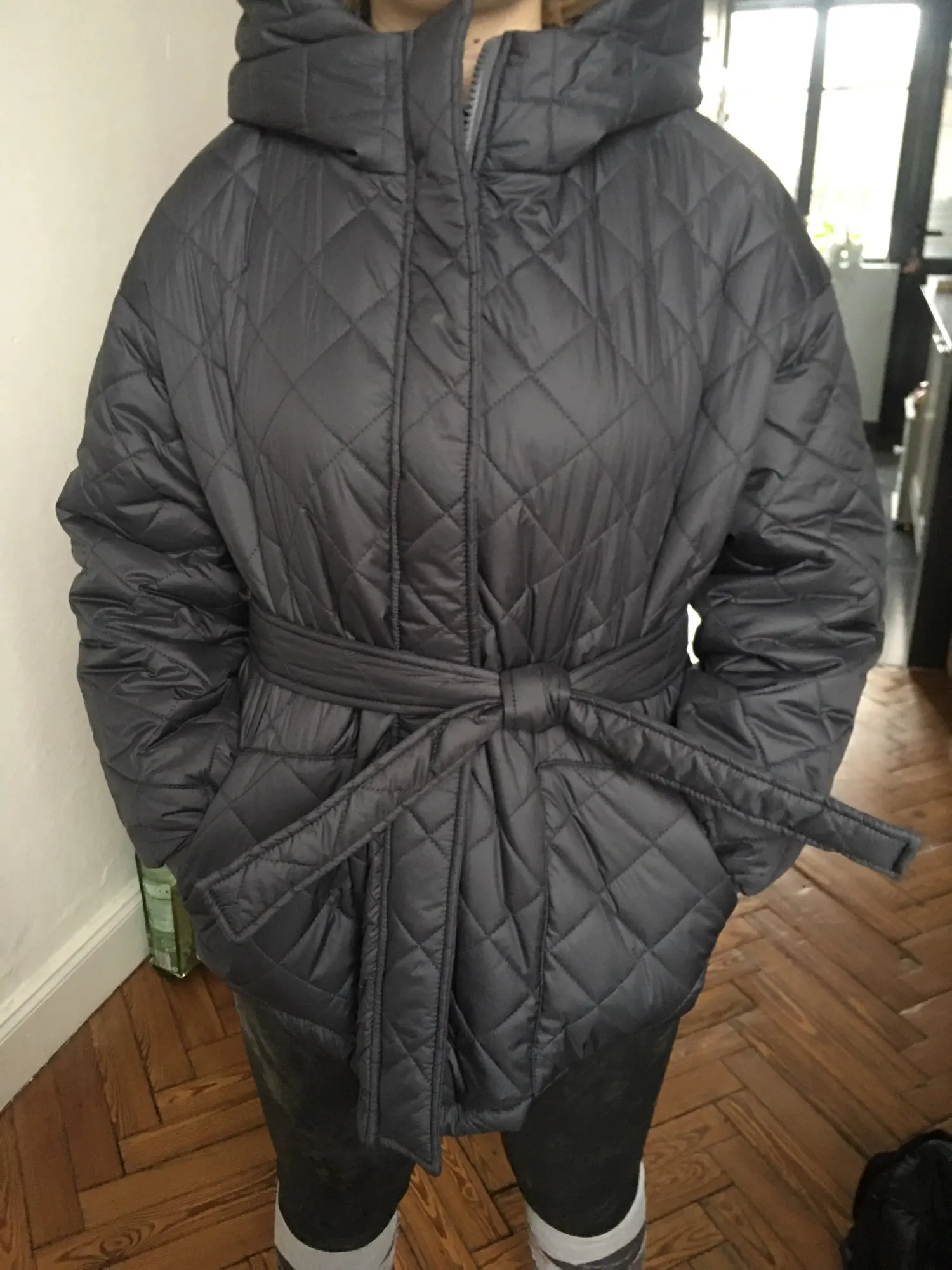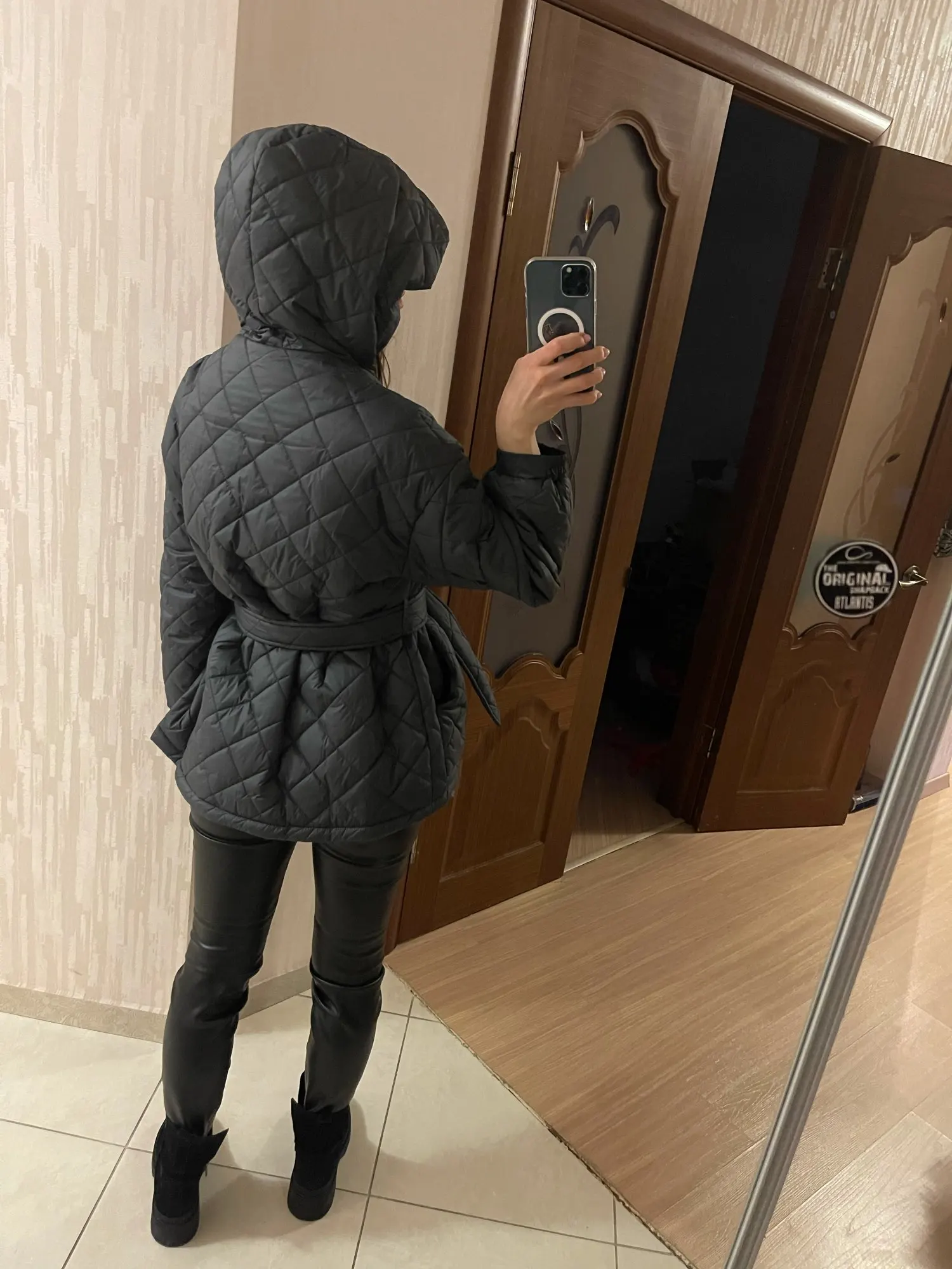 Куртка хороша, как у всех на фото. Но очень широка. На свой 42/44 прям совсем, пояс конечно спасает но если сильно затянуть низ весь топорщится. А ткань куртки мягкая. Я даже удивилась. На фото продавца кажется что ткань плотная и такая как будто не мнётся, а на деле мягкая как тряпка. Но смотрится норм. Заказывала когда ещё не так популярна куртка была, ждала 2 недели в Москву