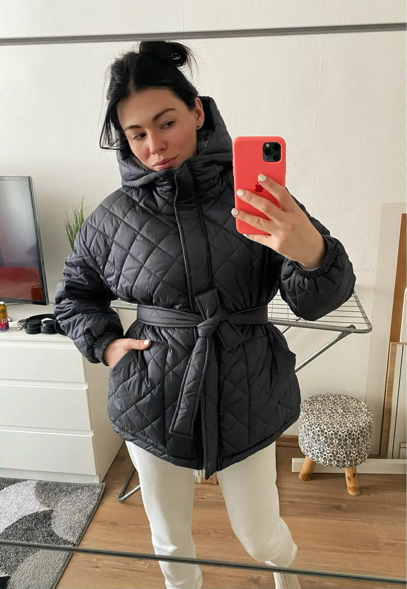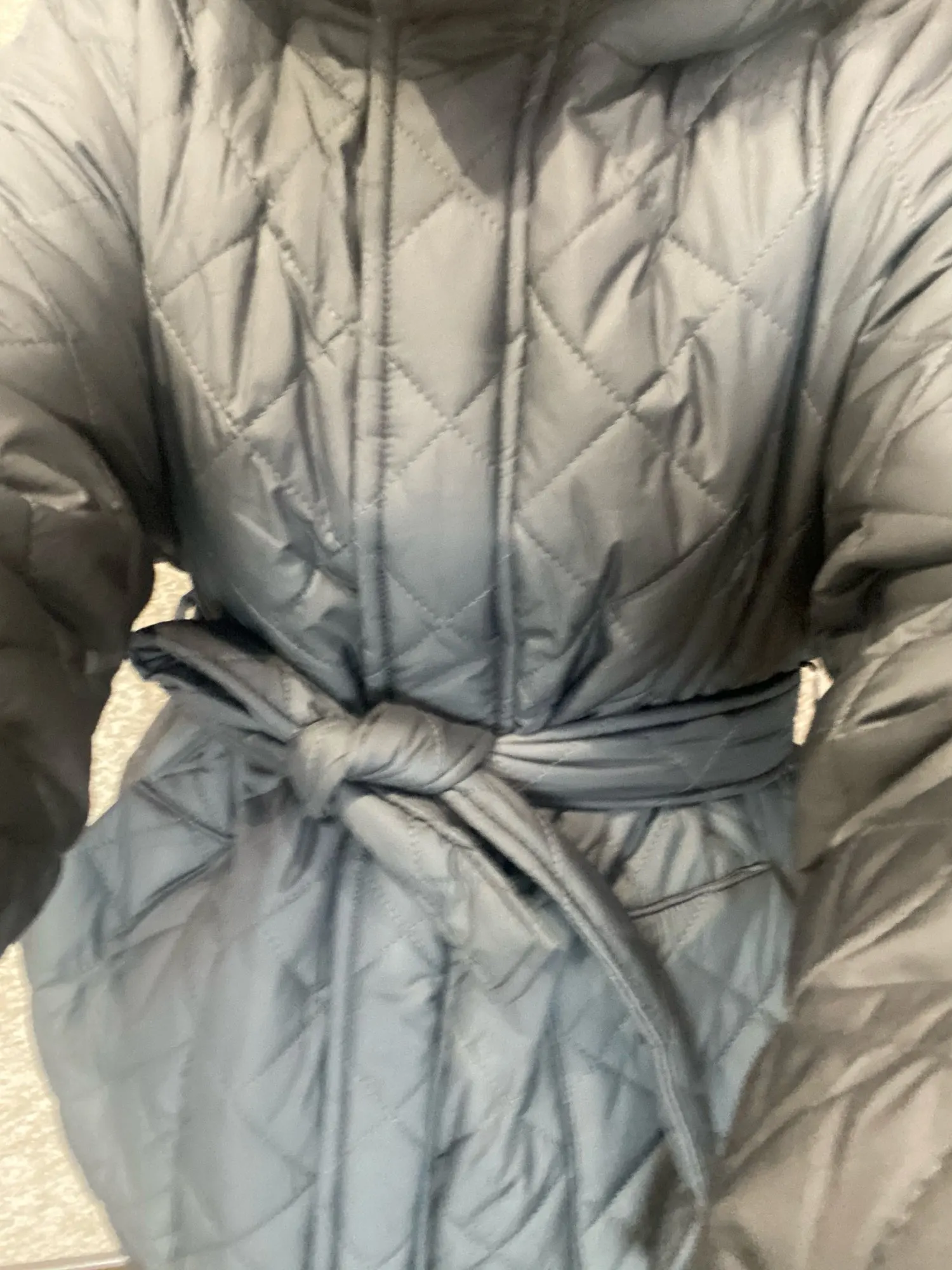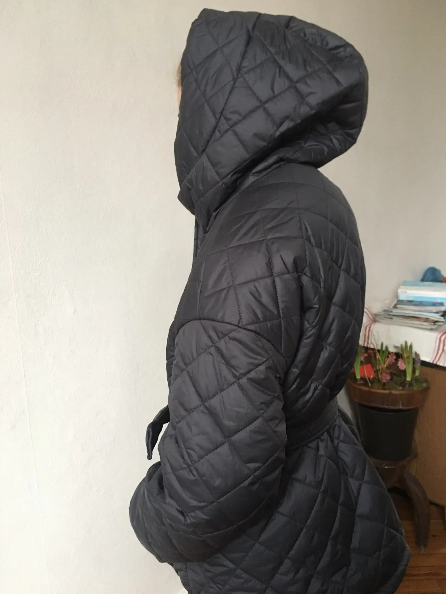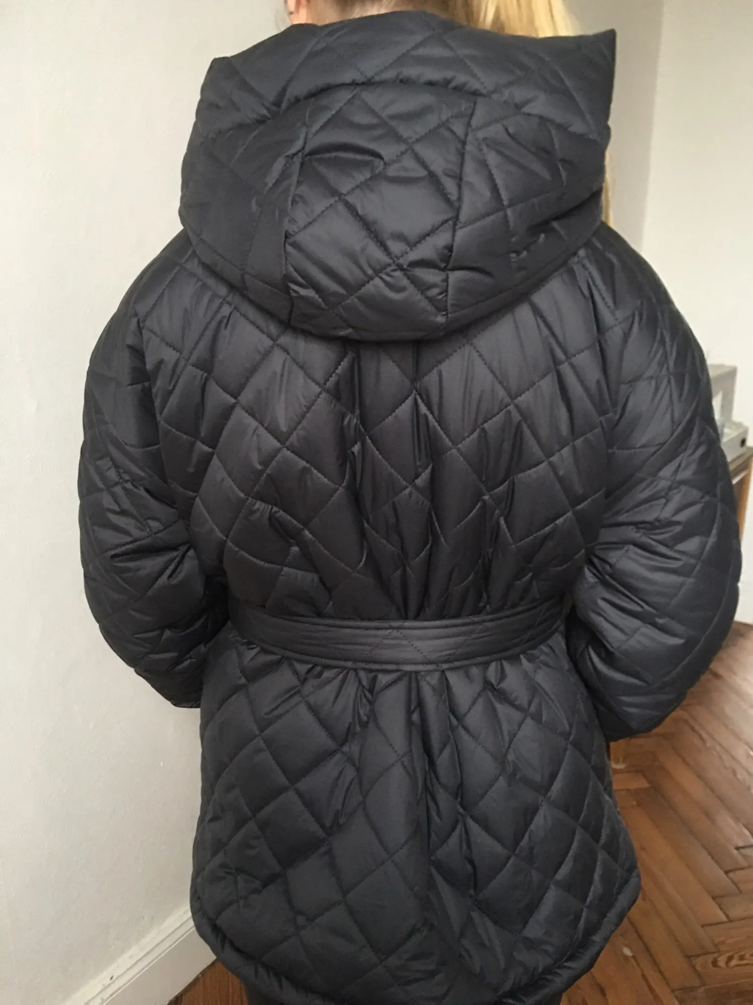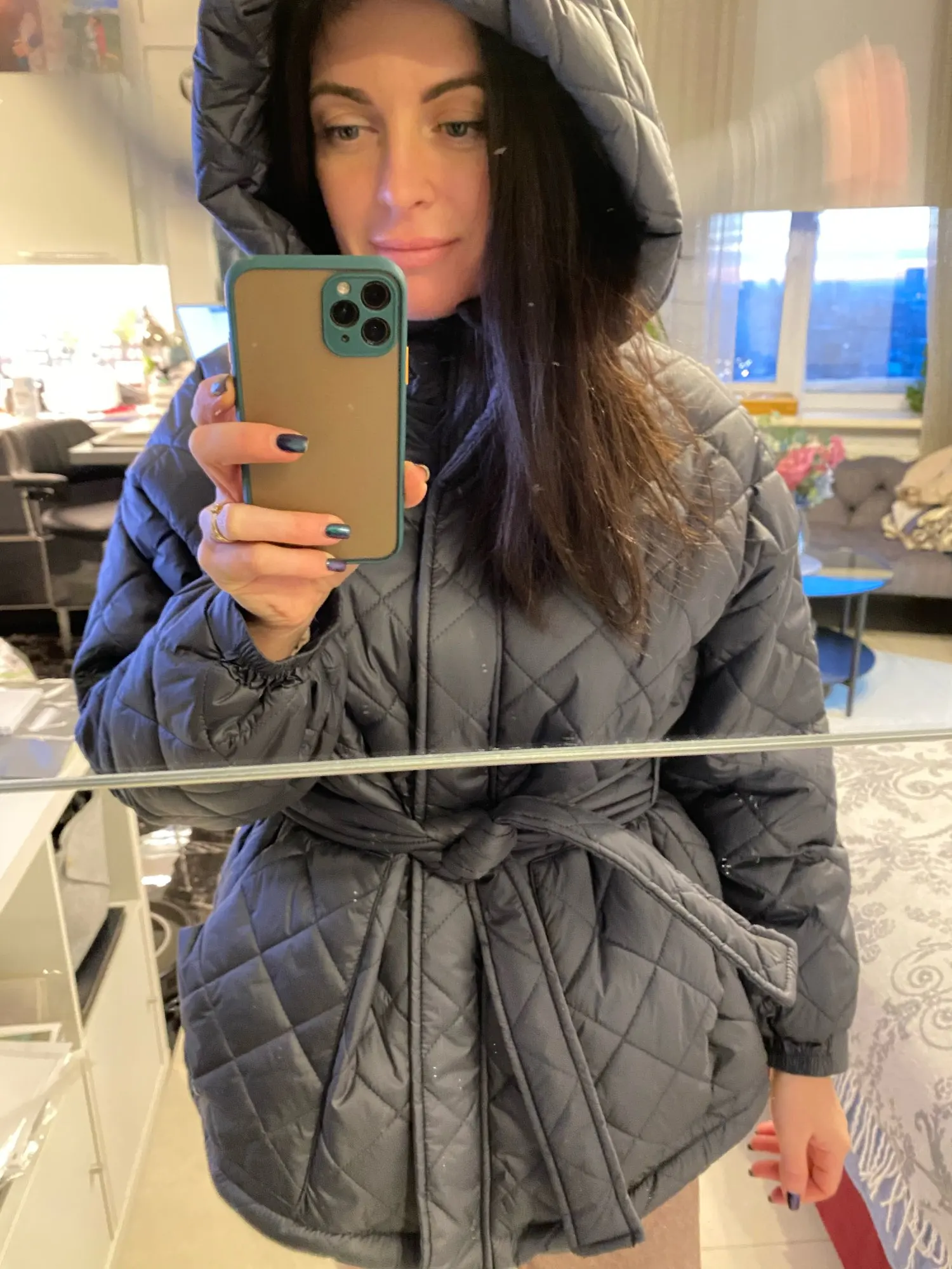 Куртка хороша, как у всех на фото. Но очень широка. На свой 42/44 прям совсем, пояс конечно спасает но если сильно затянуть низ весь топорщится. А ткань куртки мягкая. Я даже удивилась. На фото продавца кажется что ткань плотная и такая как будто не мнётся, а на деле мягкая как тряпка. Но смотрится норм. Заказывала когда ещё не так популярна куртка была, ждала 2 недели в Москву