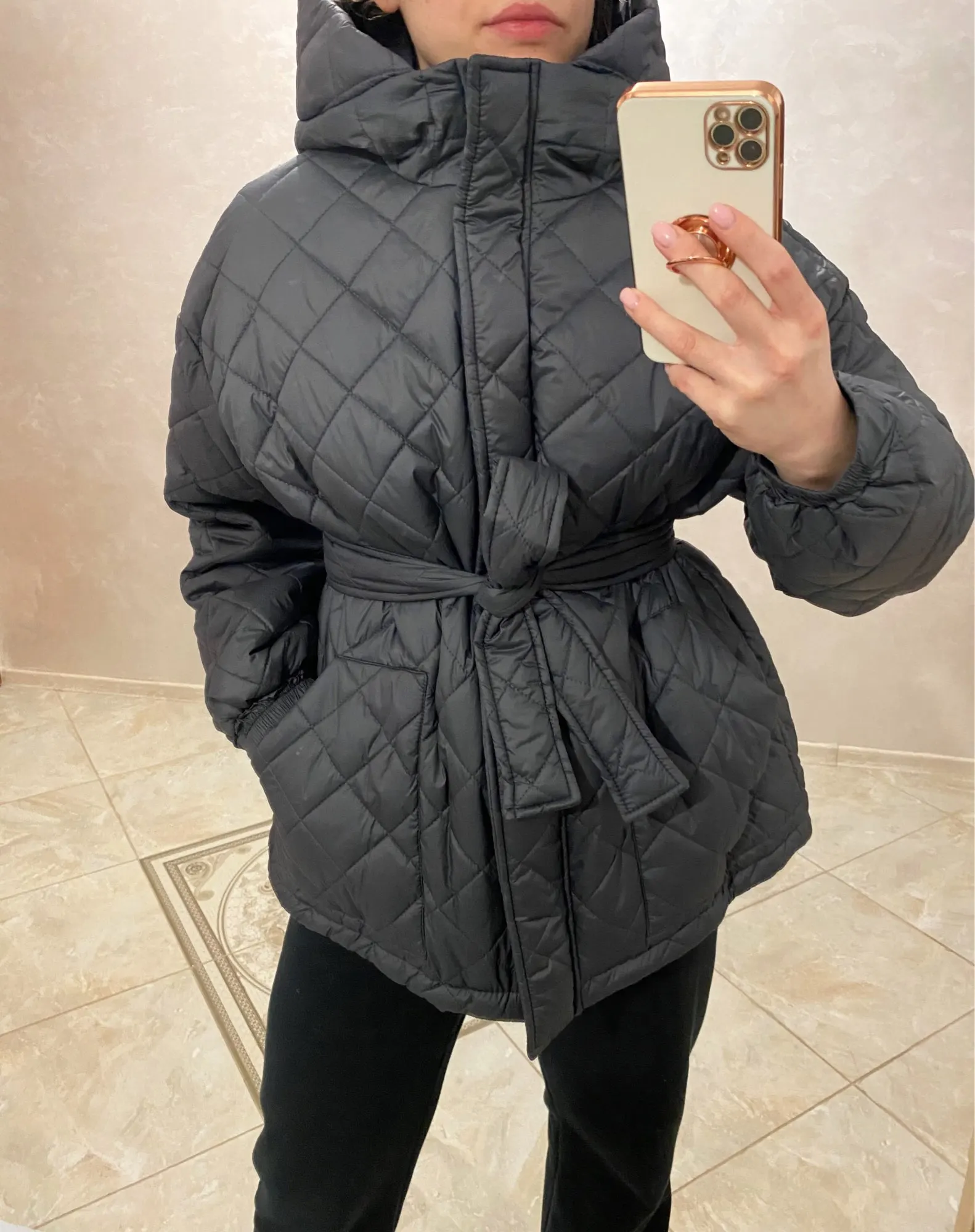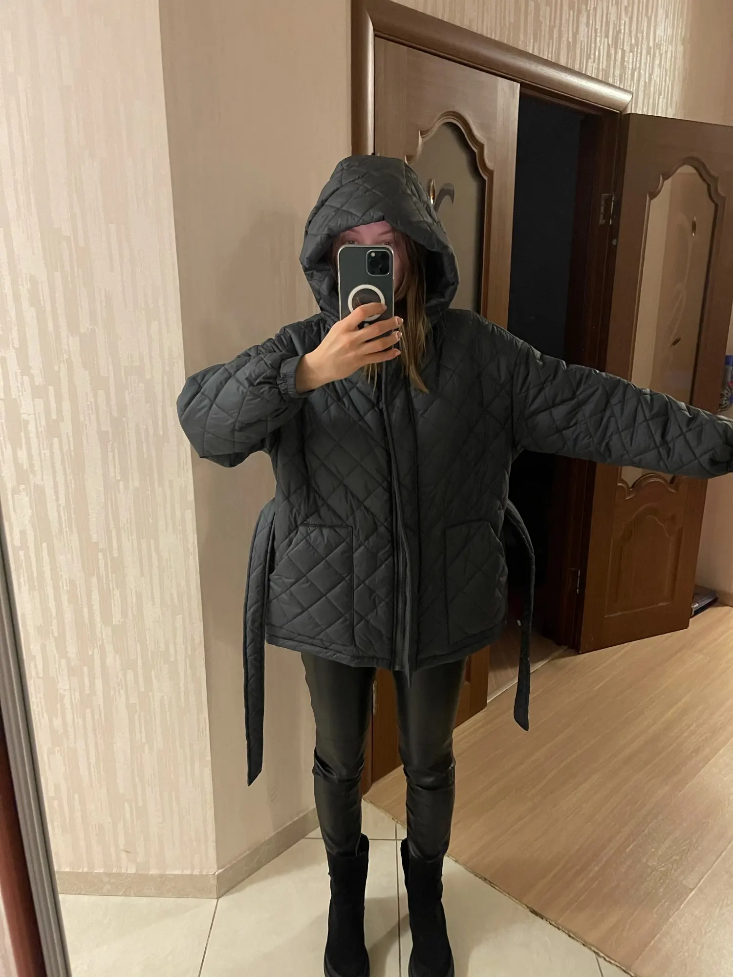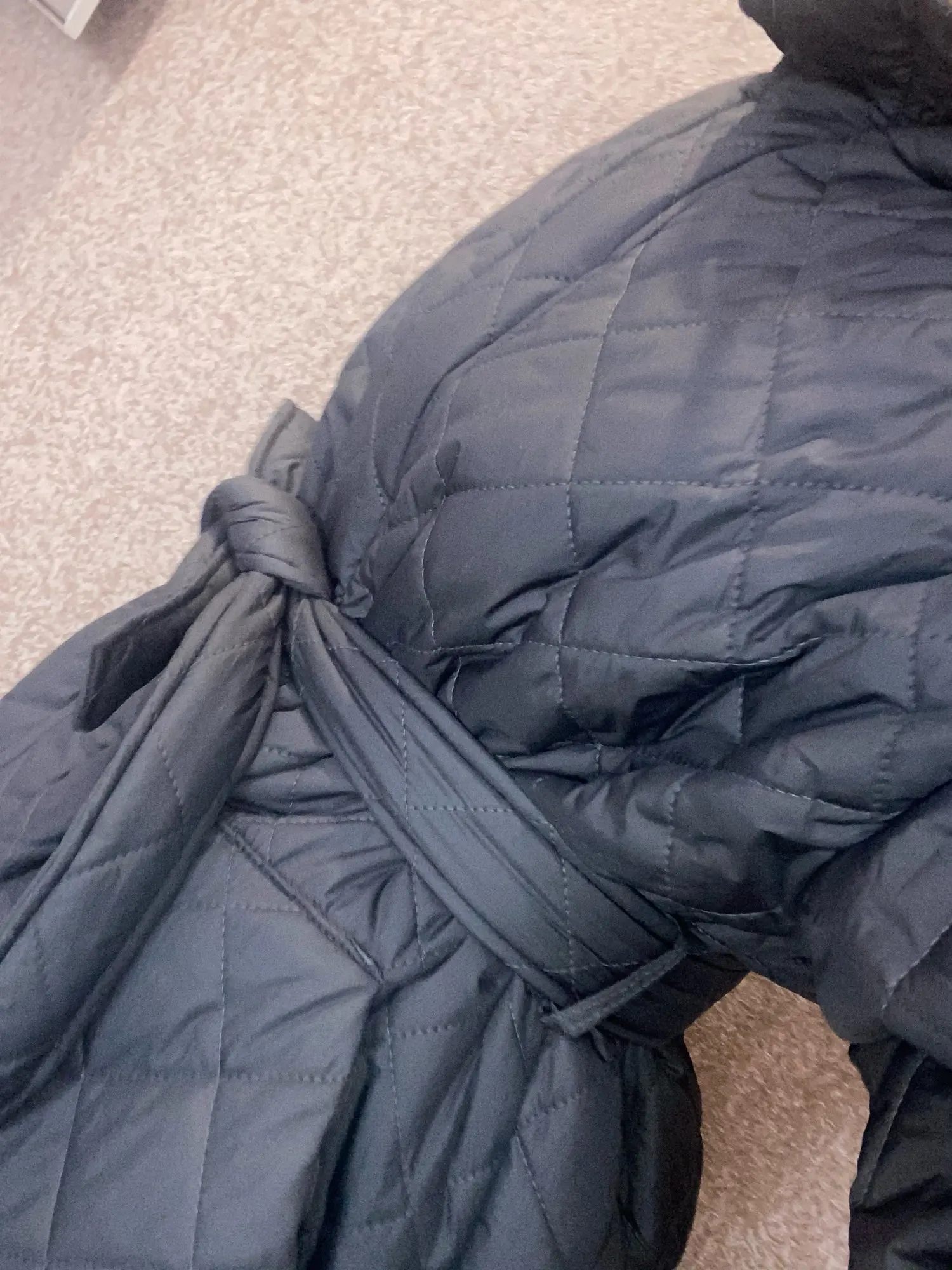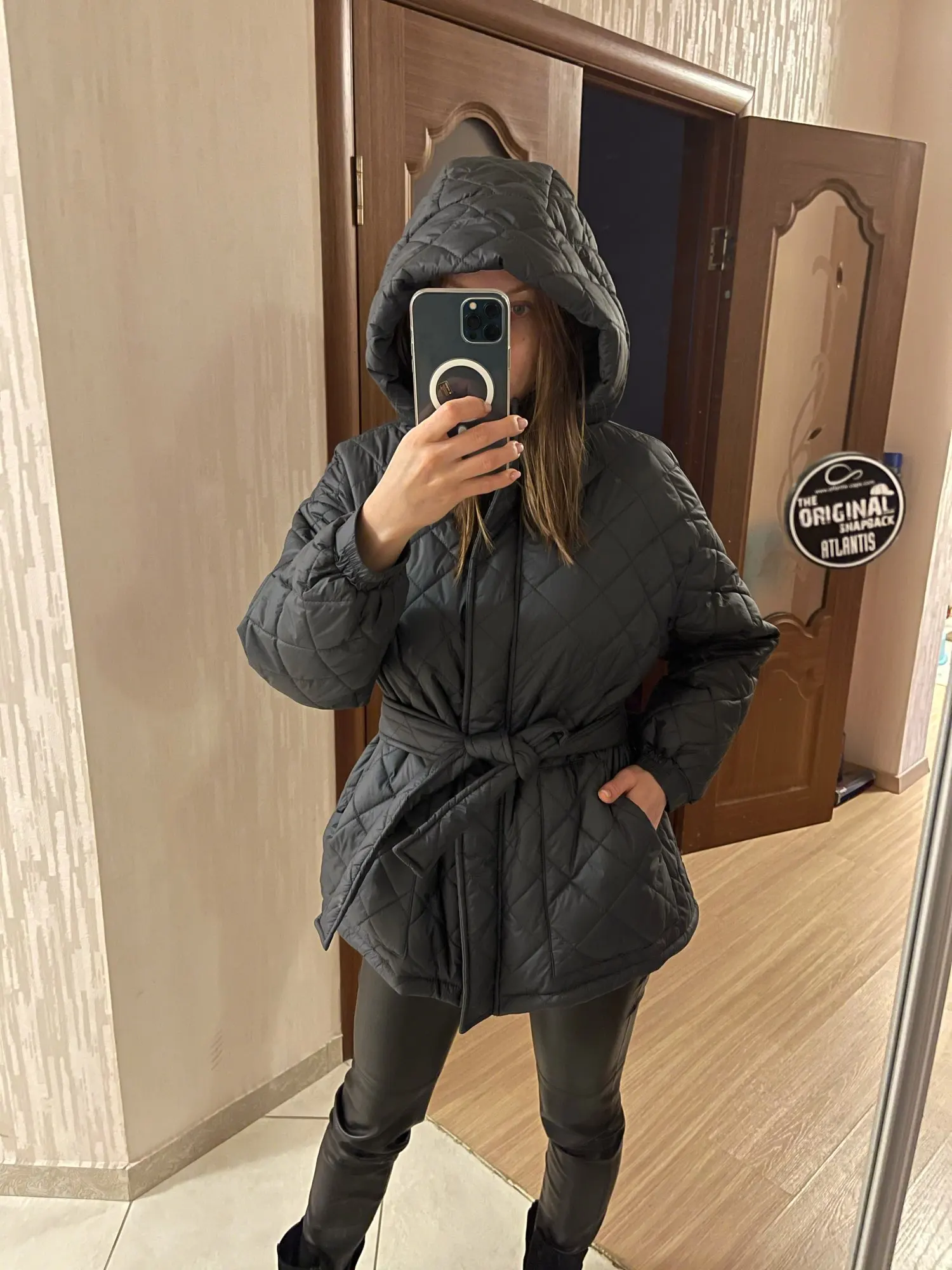 Куртка крутая! Строчки ровные, нитки не торчат! Буду носить без пояса