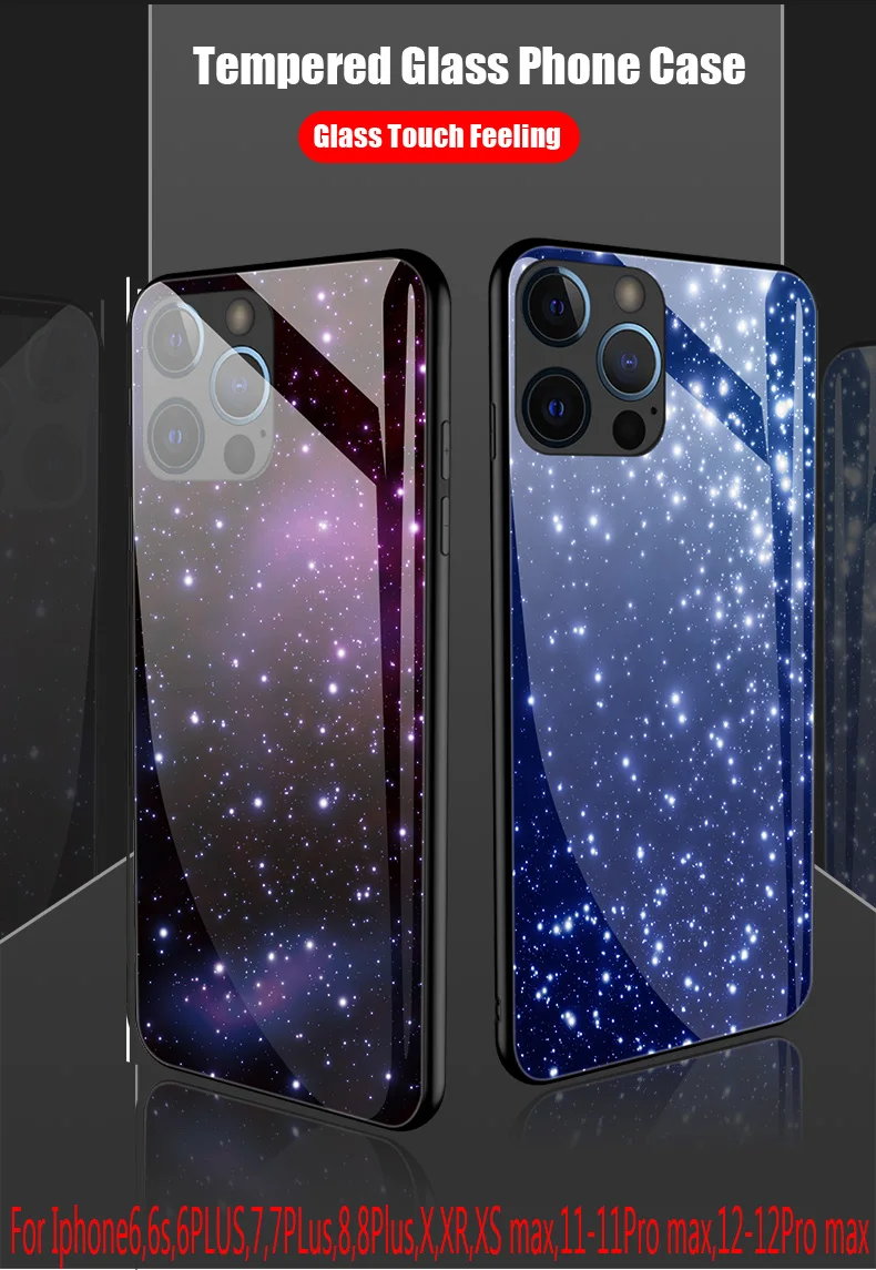 Чехол со звездами для Iphone 11, 12, закаленное стекло, жесткая задняя крышка, великолепный чехол для IPhone 6, 6S plus, 7, 8 plus, X, XR, XS, 11, 12 Pro Max