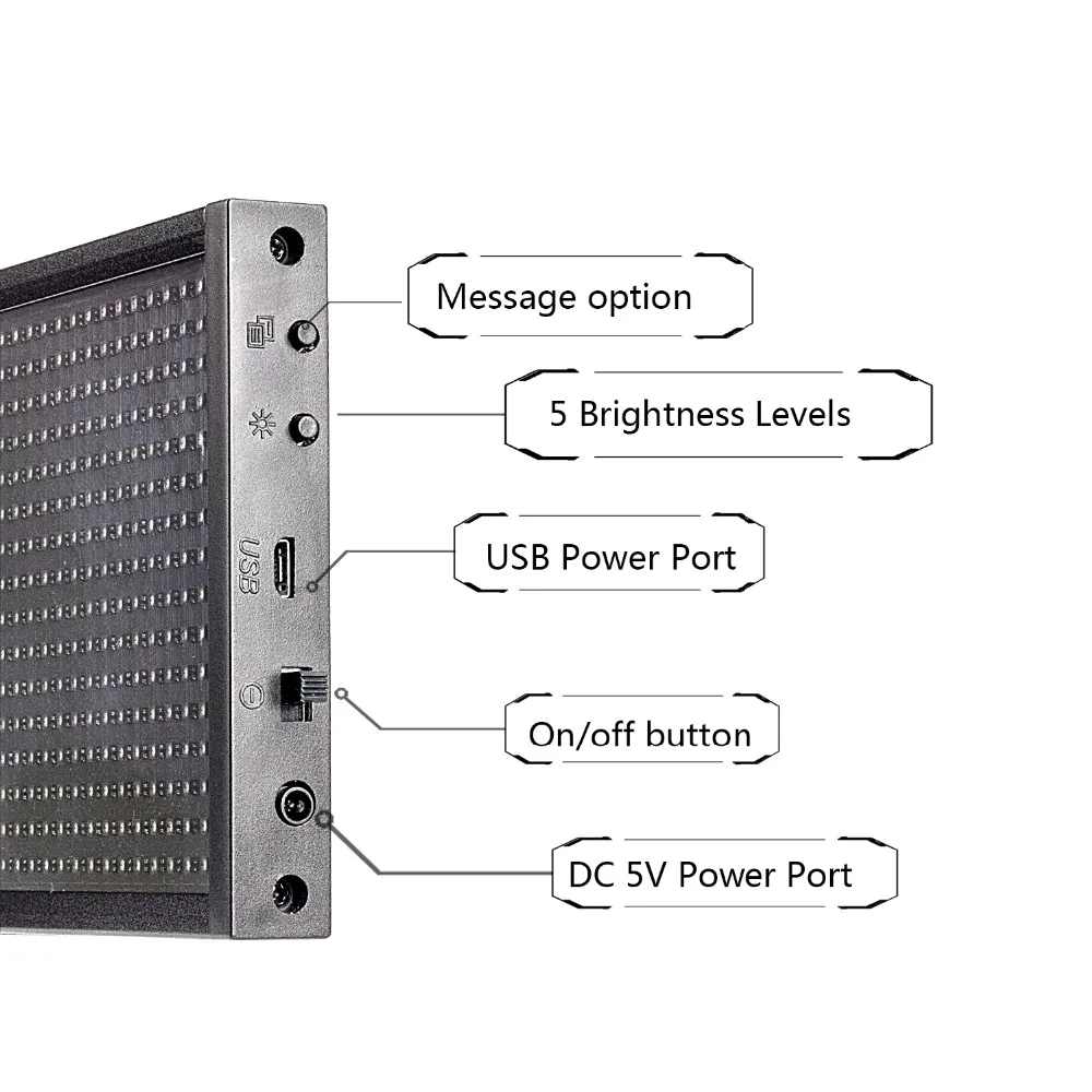 1,16x96 пикселей, 1536 яркий светодиодный экран, дисплей четко. Настройте ваше сообщение, что вы хотите, выделите свою индивидуальность, мощный способ воплотить ваш бренд в голове ваших клиентов 2. Возможность отображения: несколько языков, текст, номер, символ. Размер шрифта Текстового Сообщения регулируется, скорость прокрутки регулируется, яркость дисплея регулируетсяЯзык поддержки: английский/китайский (простой и традиционный) арабский/Иврит/русский/испанский/немецкий/французский/японский/Португальский/Таиланд/и т. д.