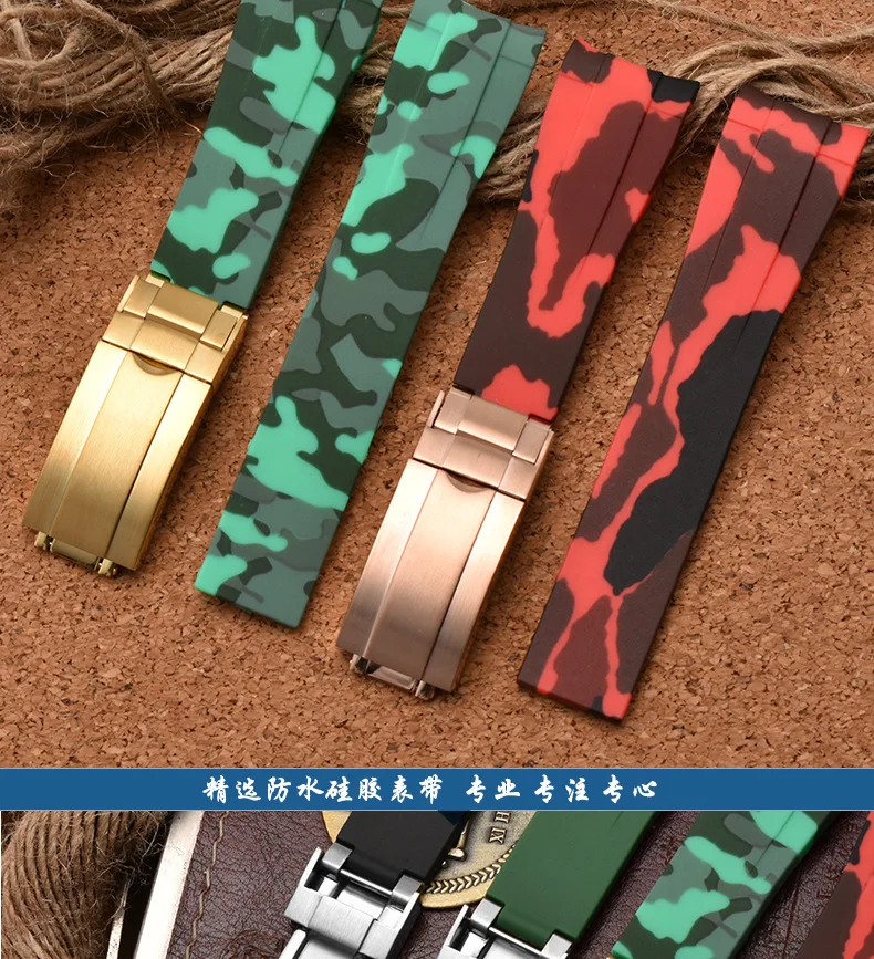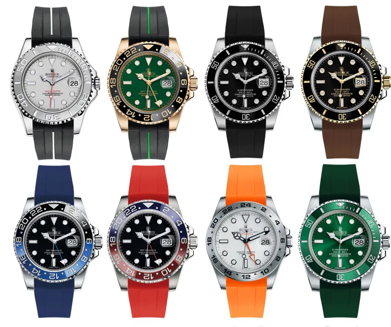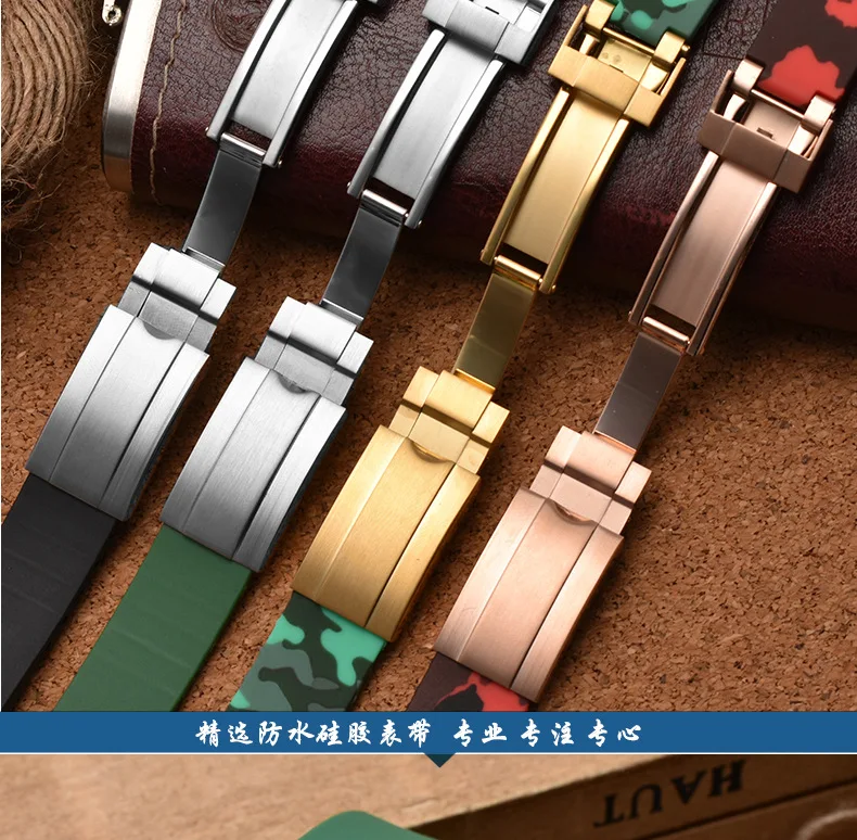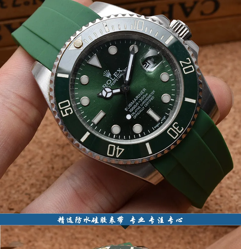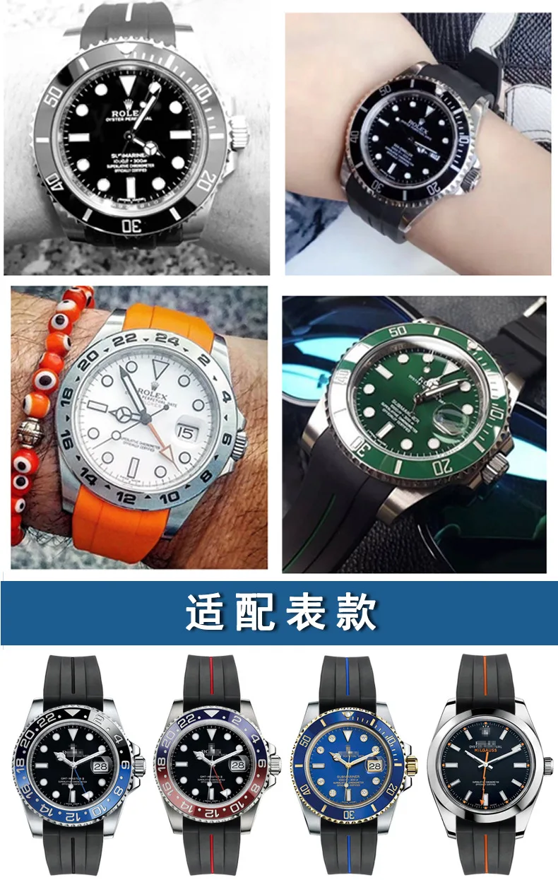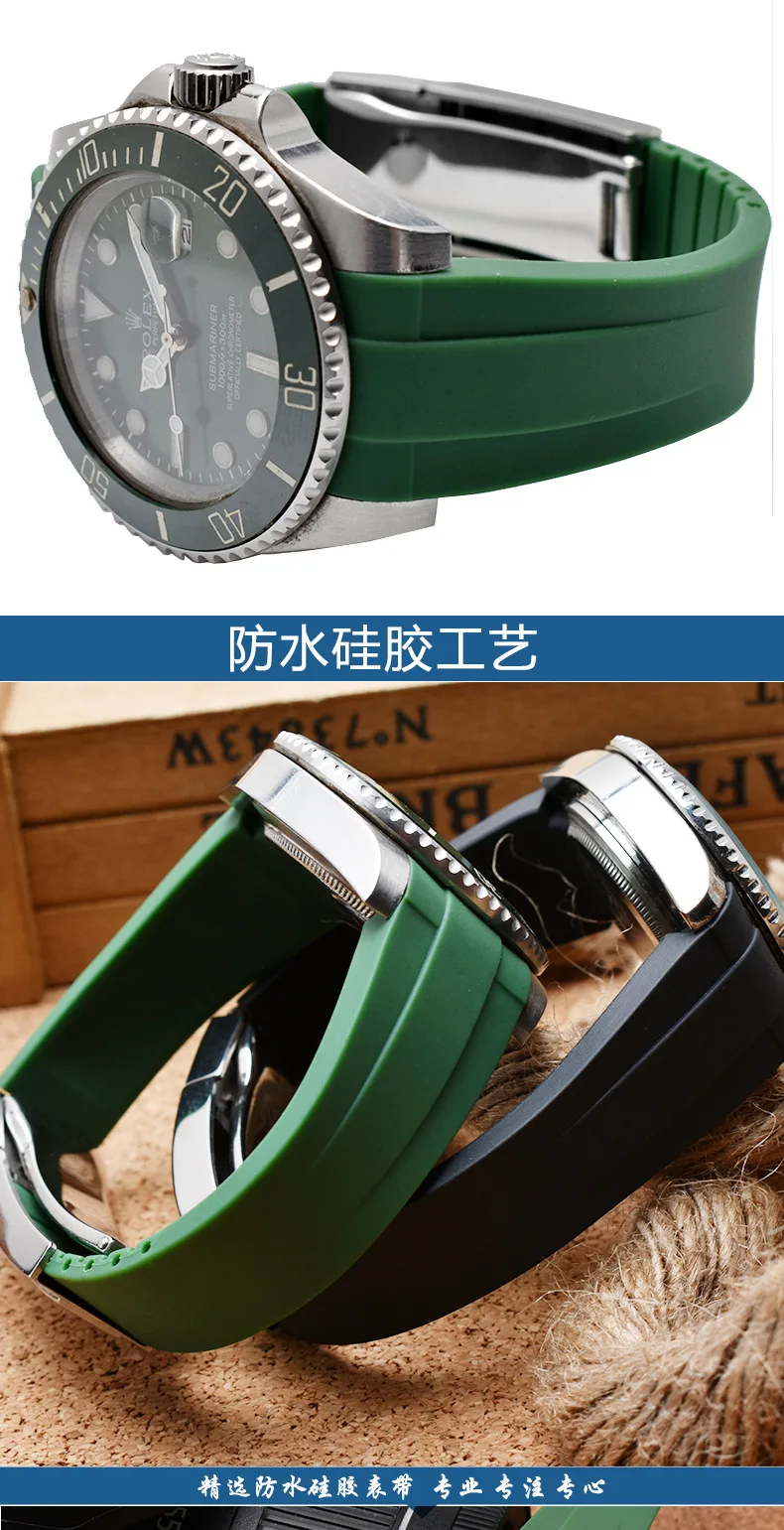 Ремешок для часов, 20 мм, для часов Rolex, резиновый, с застежкой