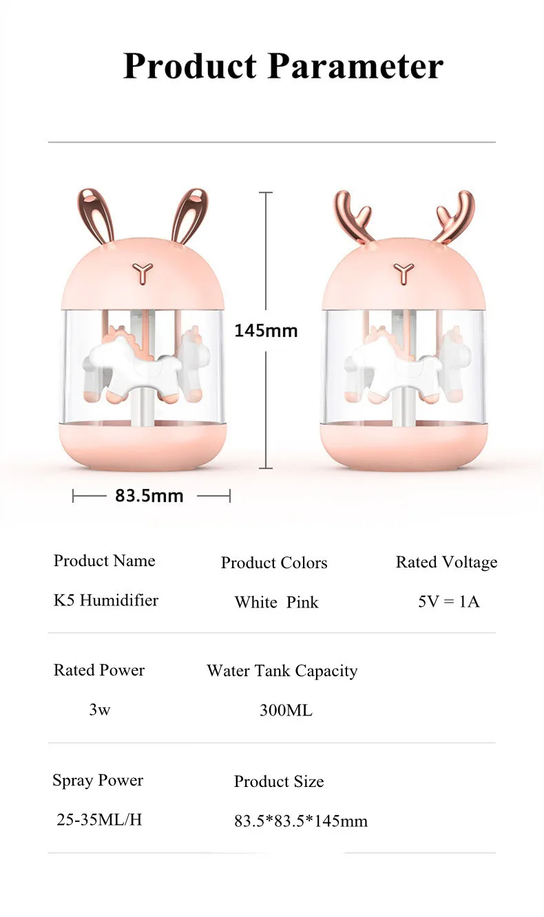 Увлажнитель-распылитель воздуха, 300 мл, USB, с романтической светодиодный Ной лампой