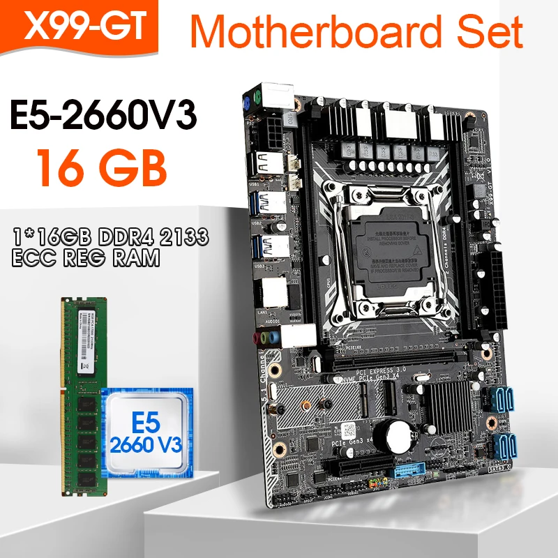 Комплект материнской платы X99 GT, процессор E5 2660V3 LGA2011-3 1 шт. * 16 ГБ = 16 Гб 2133 МГц DDR4 память ECC REG, M.2 WIFI,NVME M.2 слот