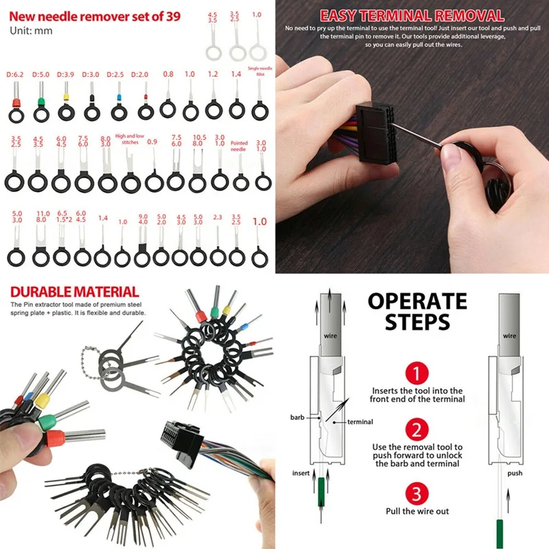 39 шт.компл. инструмент для снятия клемм автомобильной вилки, инструмент для снятия клемм автомобильной проводки, инструменты для разборки и ремонта автомобилей