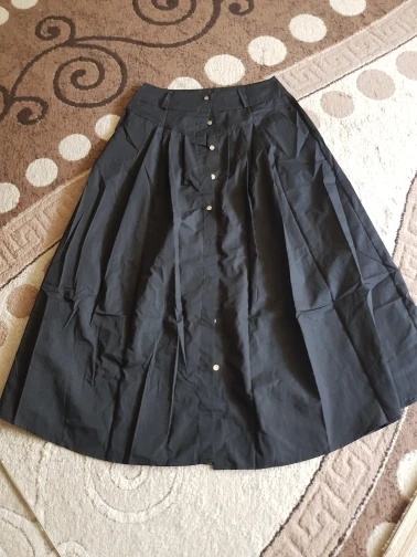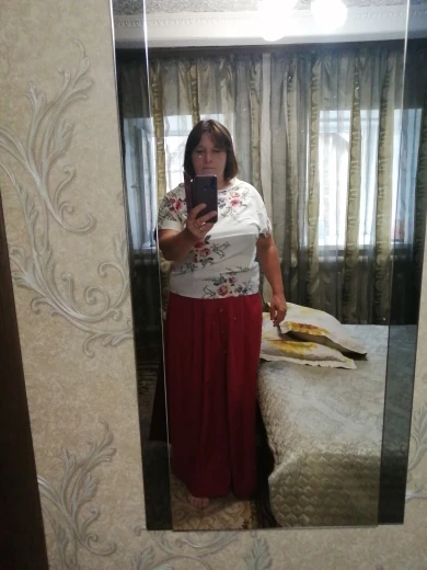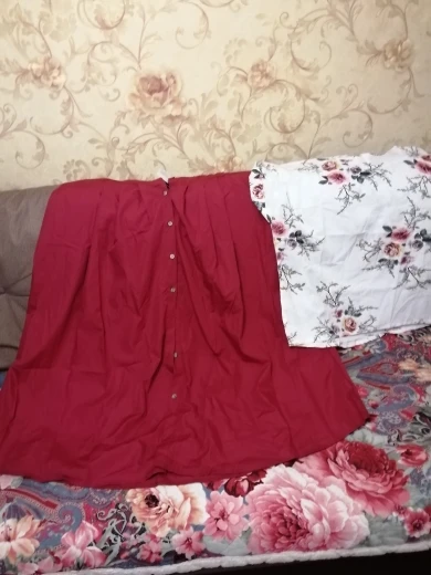 Юбка очень понравилась. Очень красивая. Сшита очень хорошо. Швы ровные, нитки не торчат. Фасон как на картинке. Меня делает стройной. Материал плотный, лёгкий с хлопком. Спасибо продавцу. Размер правильный.