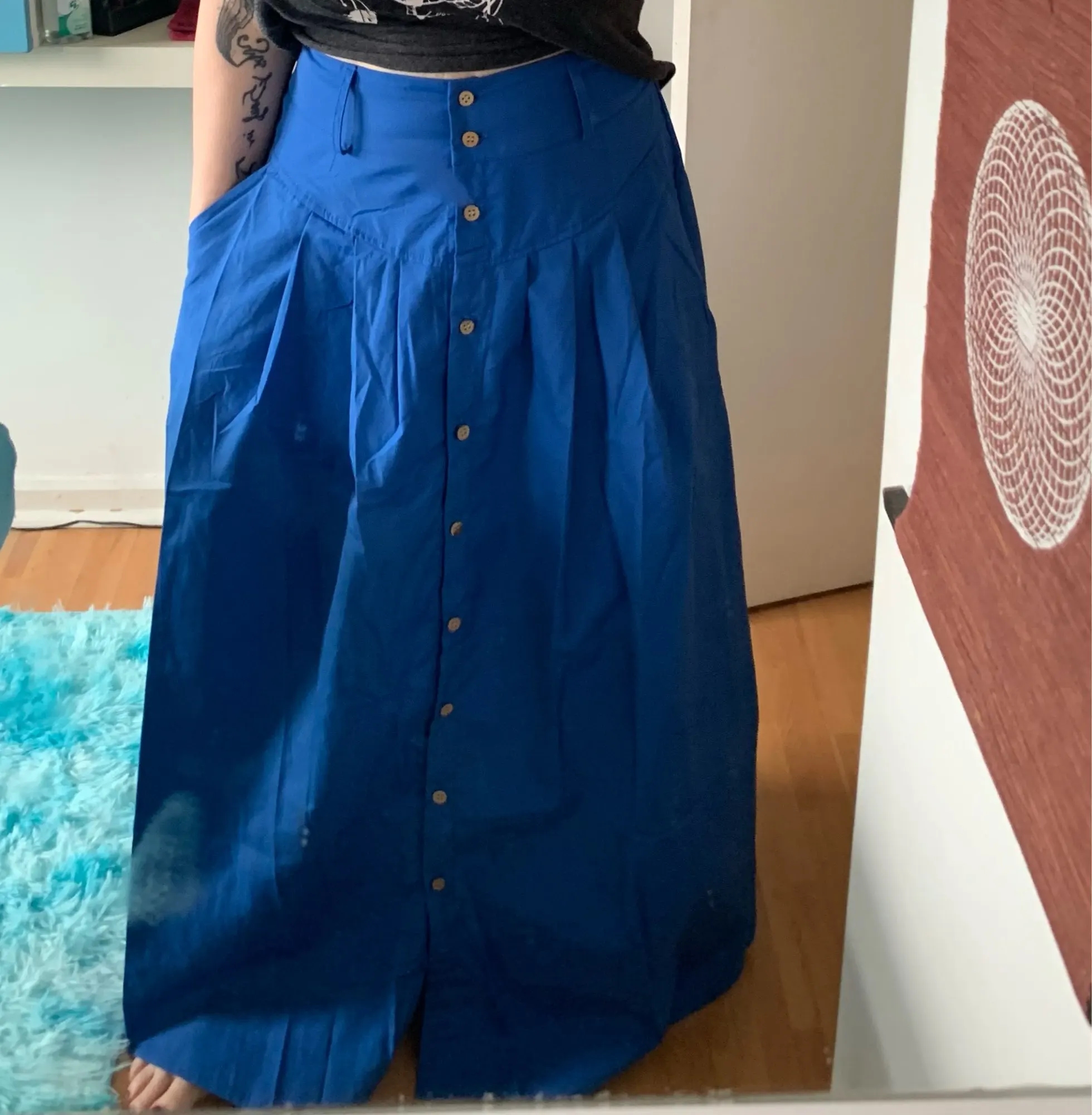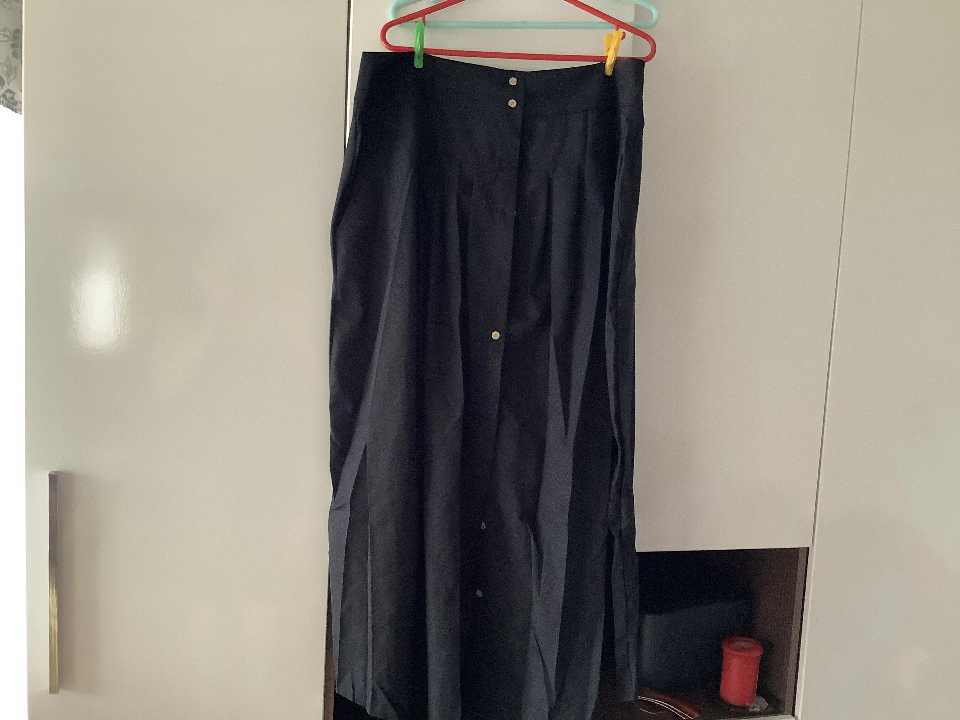 Длинная юбка из тонкой ткани, но очень длинная, так что он также подходит для крупных женщин, как я 1,83 достаточно длинная. Он сидит очень хорошо воздушно и с тапочками внутри, он очень милый с белой блузкой на нем, я чувствую себя супер женским.