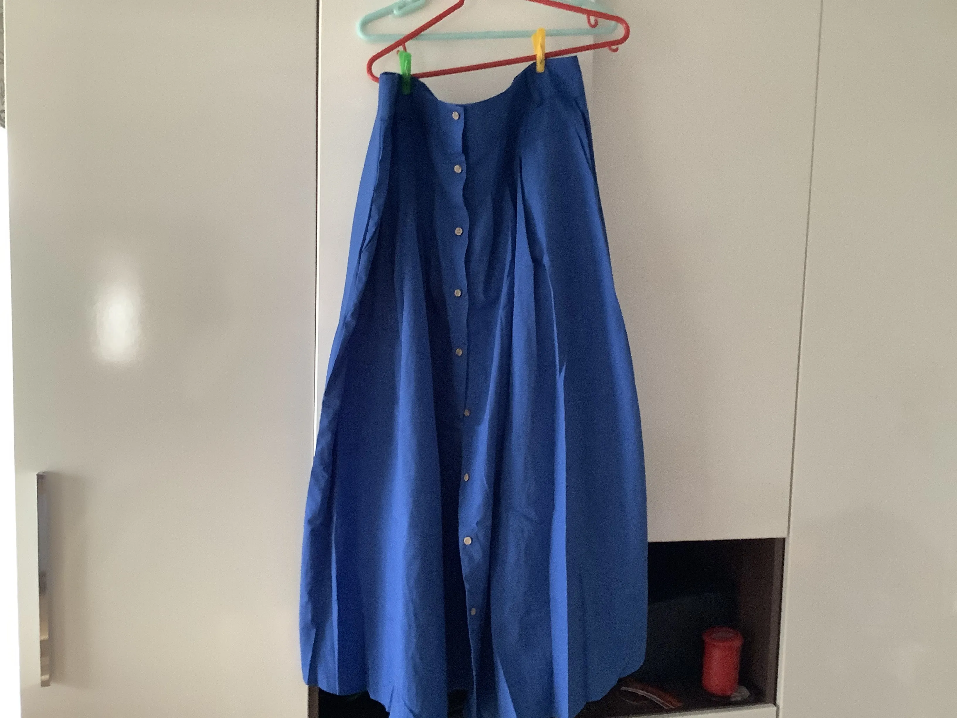 Юбка супер!!! Цвет, ткань, размер, описание все соответствует. Пуговки пришиты правда светлыми нитками, а надо было синими, но это не проблема перешью. На обьем талии 103 бедра 116 сидит идиально. Отправлена была быстро, через 2 недели получила, с продавцом не общалась не было необходимости. Рекомендую!!!!