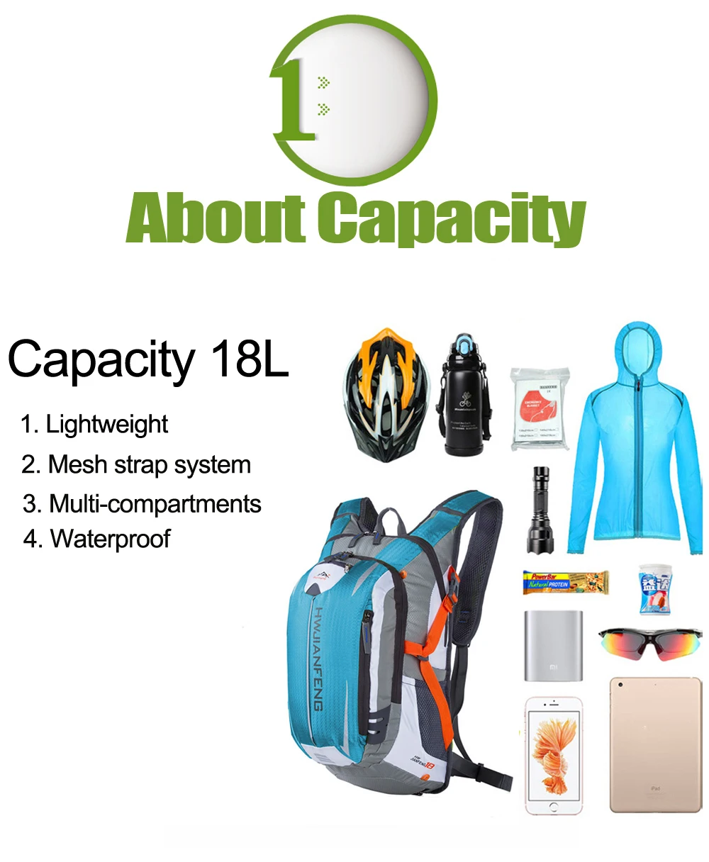 18L спортивный рюкзак, он также предоставляет большую запасную комнату для ваших предметов первой необходимости на открытом воздухе, включая дополнительную одежду, спортивное полотенце, ключ для телефона и т. д. храните вещи в порядке и удобнее.