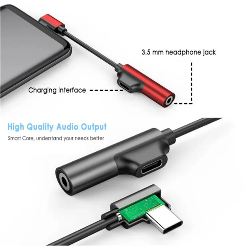 Переходник для наушников 2 в 1 с Type C на 3,5 мм 3,5 AUX USB Type-C, кабель-конвертер для Huawei Xiaomi Samsung S10 S9 S8 OnePlus HTC