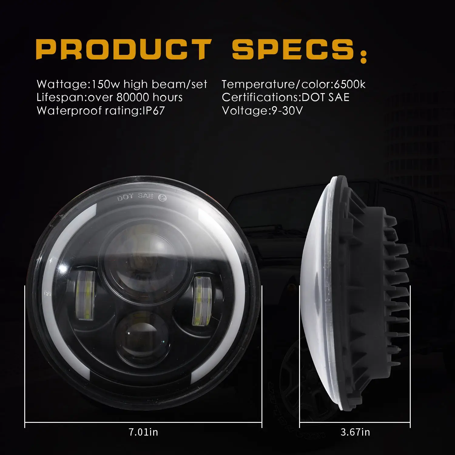 7 "дюймовый круглый светодиодный головной светильник s 150 вт высокий низкий пучок светодиодный H4 Halo Ангел глаз DRL сигнал поворота светильник для Jeep Wrangler JK Приглашаем посетить наших заказчиков выставку CJ