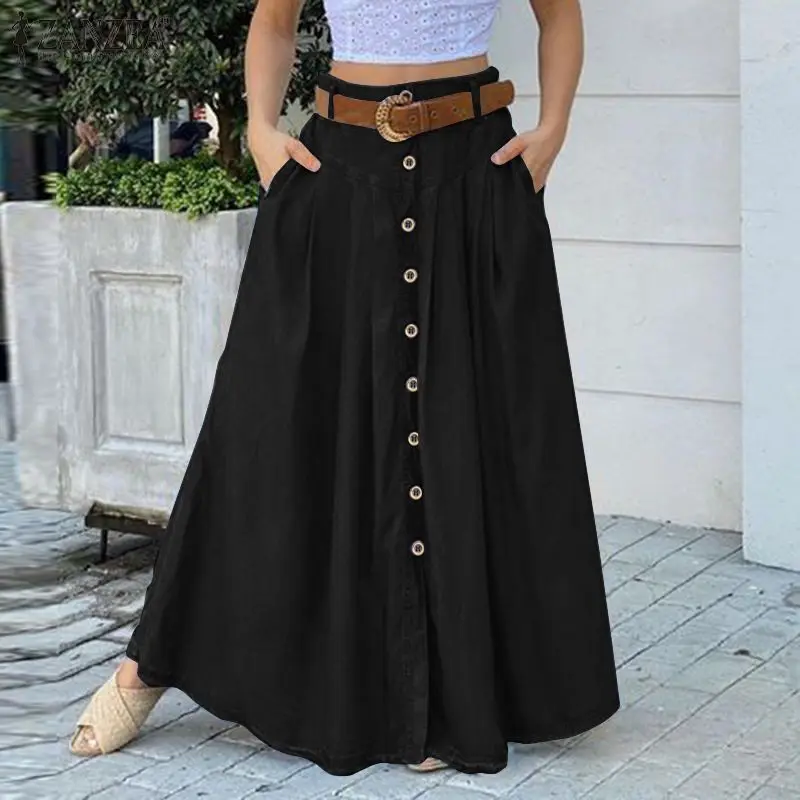 Женская Осенняя юбка макси, 2021, сарафан на пуговицах, Повседневный, с высокой талией, длинный, однотонный
