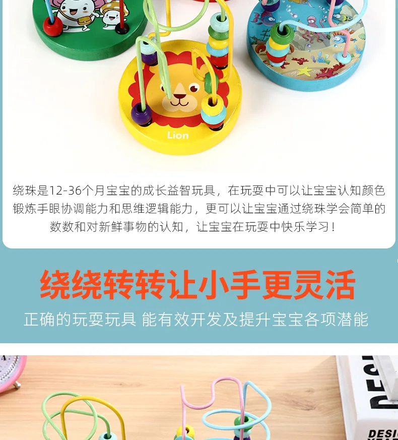 Деревянные игрушки Монтессори для мальчиков и девочек, деревянные круги, бусины, проволока, лабиринт, американские горки, Развивающие деревянные головоломки, детская игрушка
