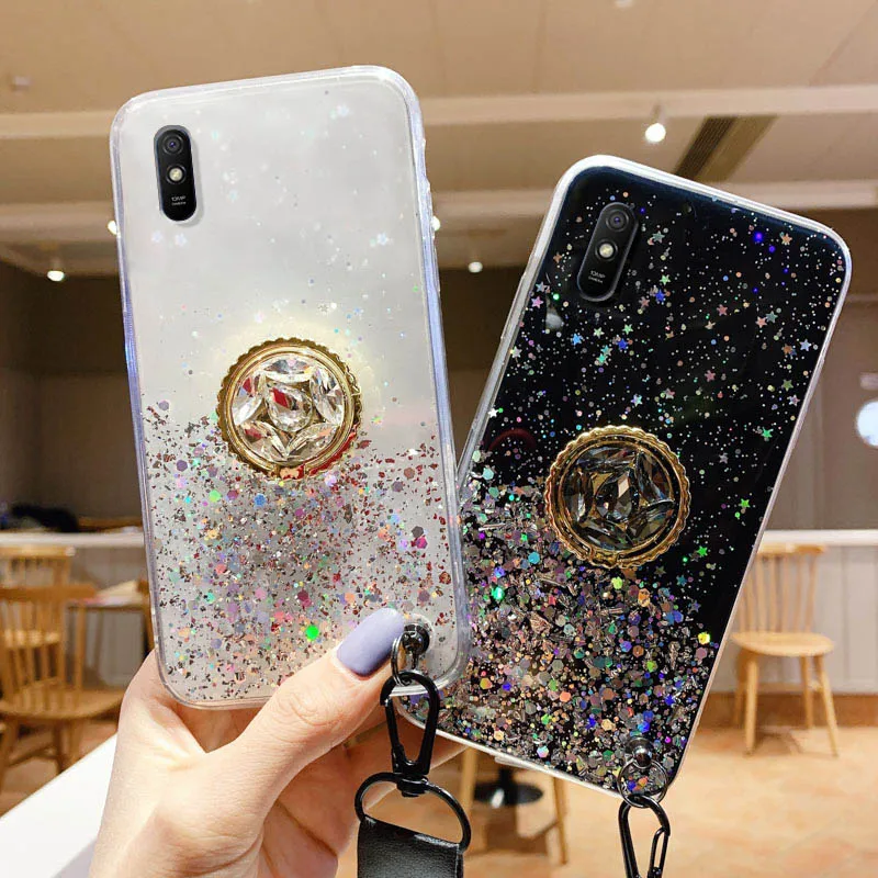 Чехол Poco F3 X3 NFC F2 Pro с блестками и кольцом-держателем для Xiaomi Mi 10T, Note 10 Pro, 10S, Note 9S, 9 Pro, 9A, 9C, Poco M3