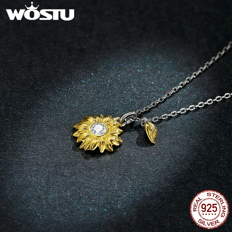 WOSTU 925 серебряное ожерелье с подсолнухами; Звено цепи ожерелье для женщин ювелирные изделия CTN212