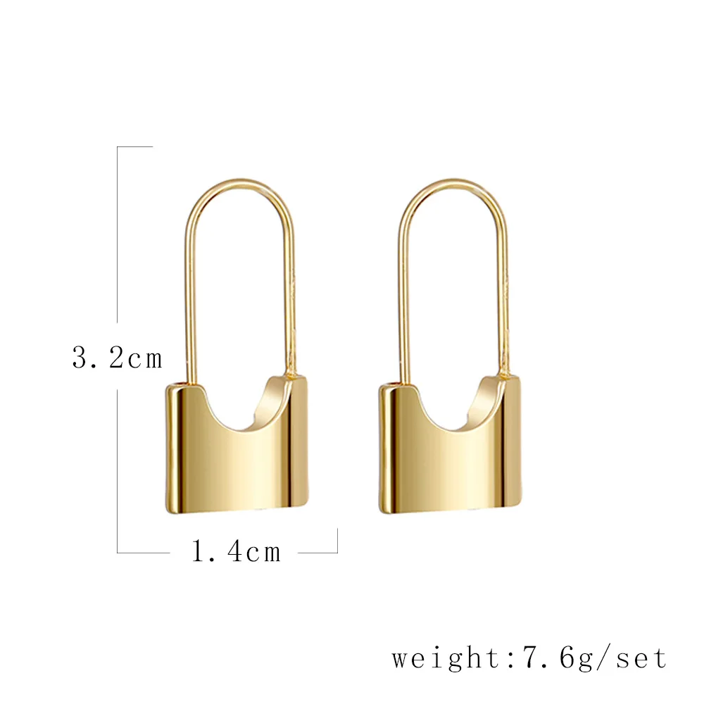Минималистский золотосеребро Цвет не сужающийся книзу массивный замок, свисающие серьги для женщин, серьги в стиле Панк Металлический Малый булавка U-Форма ювелирные аксессуары серёжки