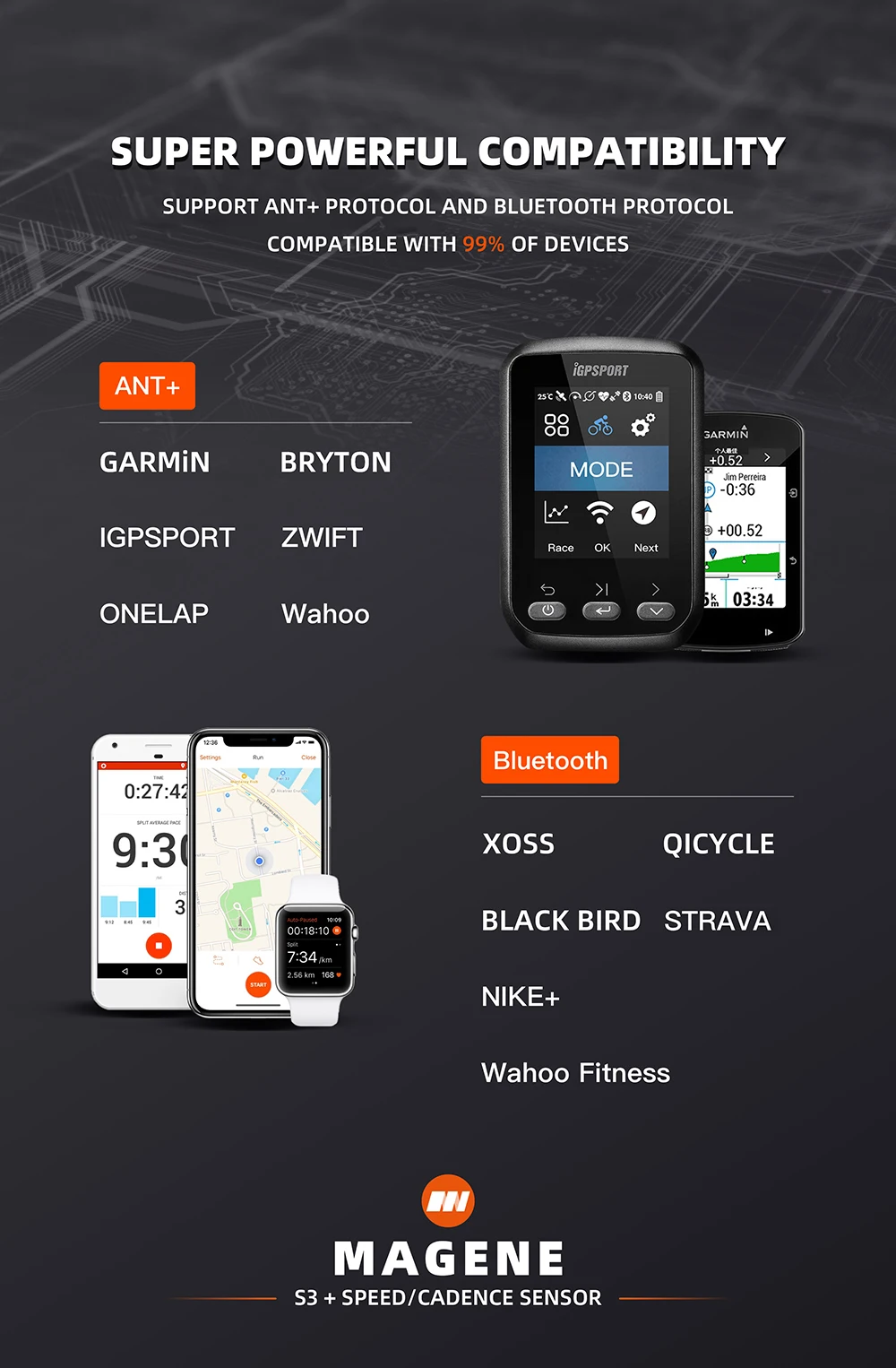 Велосипедный Magene Mover H64 S3 + ANT + USB C406, двухрежимный датчик скорости и частоты вращения педалей, монитор сердечного ритма, велосипедный компьютер Garmin XOSS