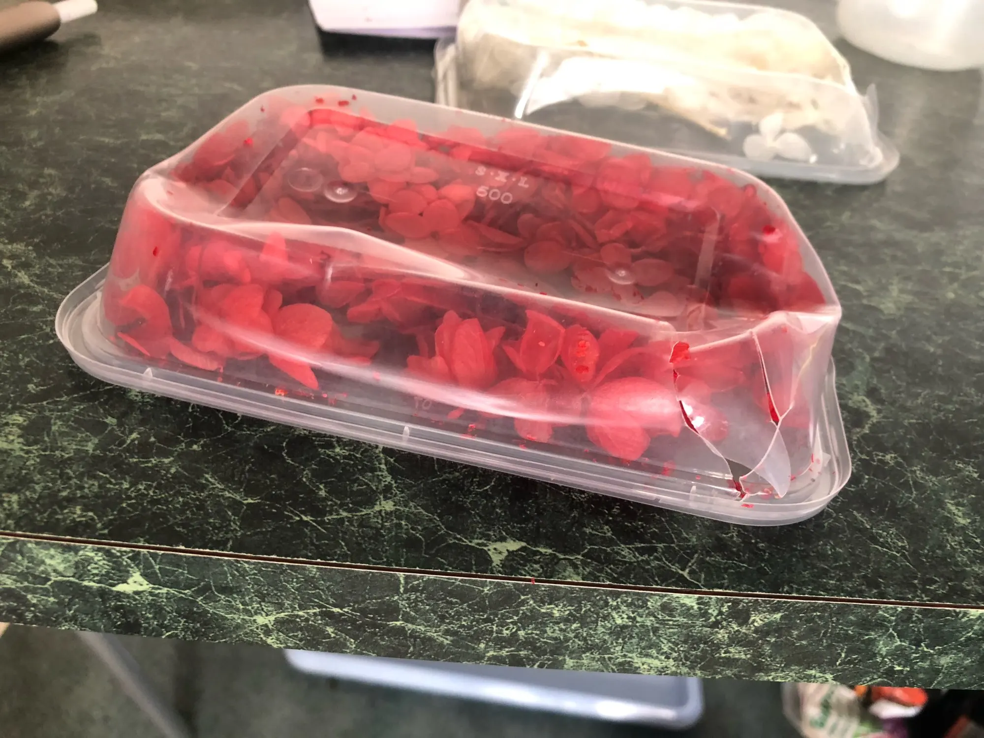 Коробка была сильно повреждена и больше не может быть использована. Цветы были влажными и не чувствовали себя сухими. Единственная хорошая вещь в этом цвете была отличной. Вернули деньги