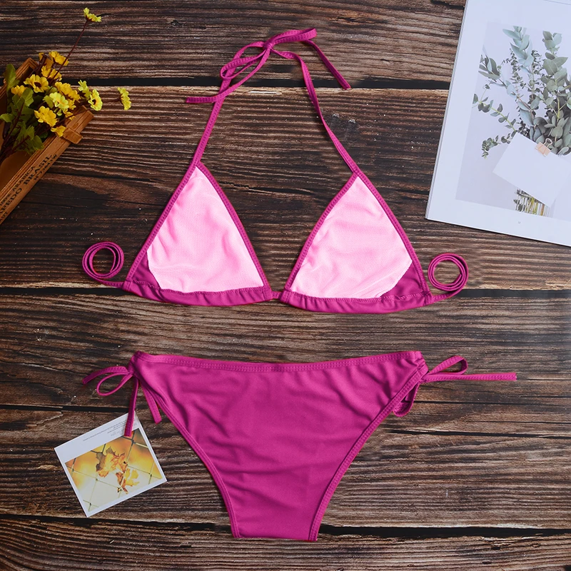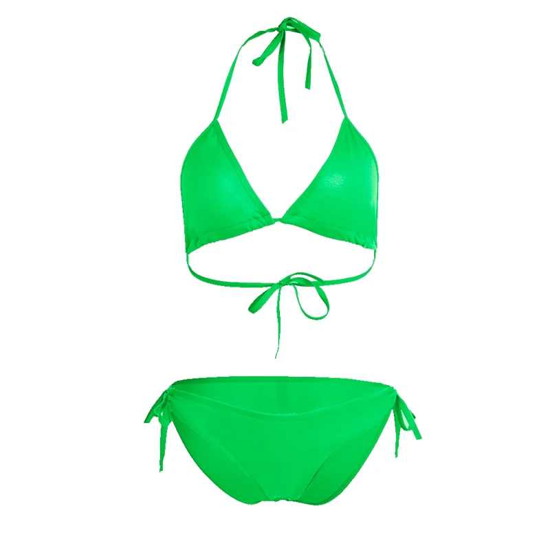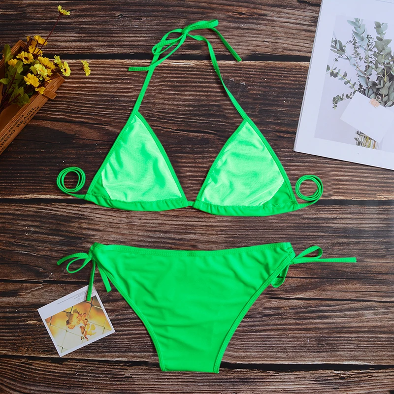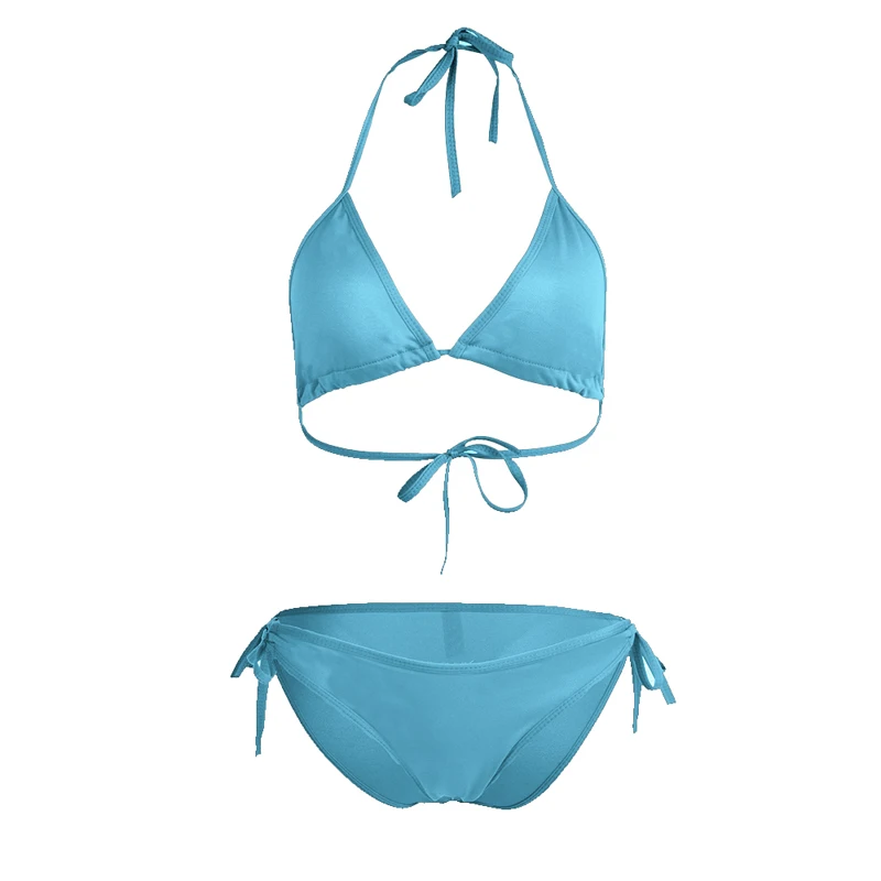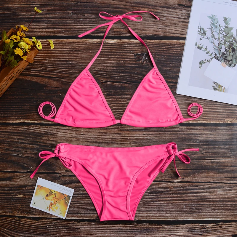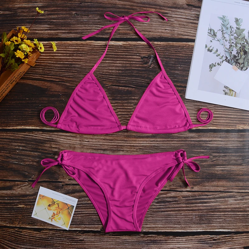 Сексуальный комплект бикини 11 цветов, Женский бразильский купальник из двух частей, бикини с низкой талией, бандажный купальный костюм с лямкой на шее, женский купальник