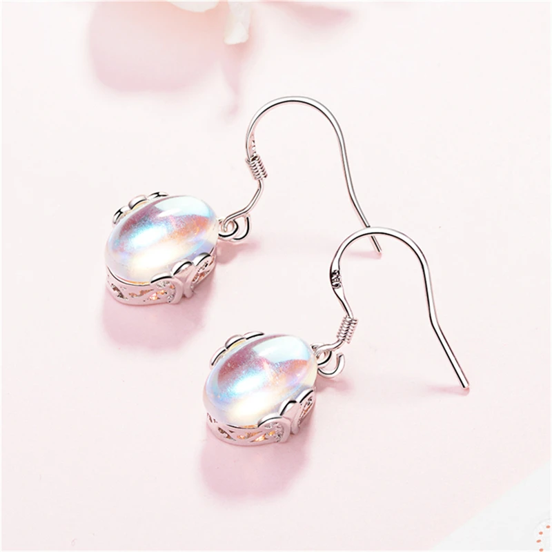 Новые милые серьги-гвоздики с лунным камнем и опалом для женщин, милые маленькие серьги, ювелирные изделия, медные женские серьги