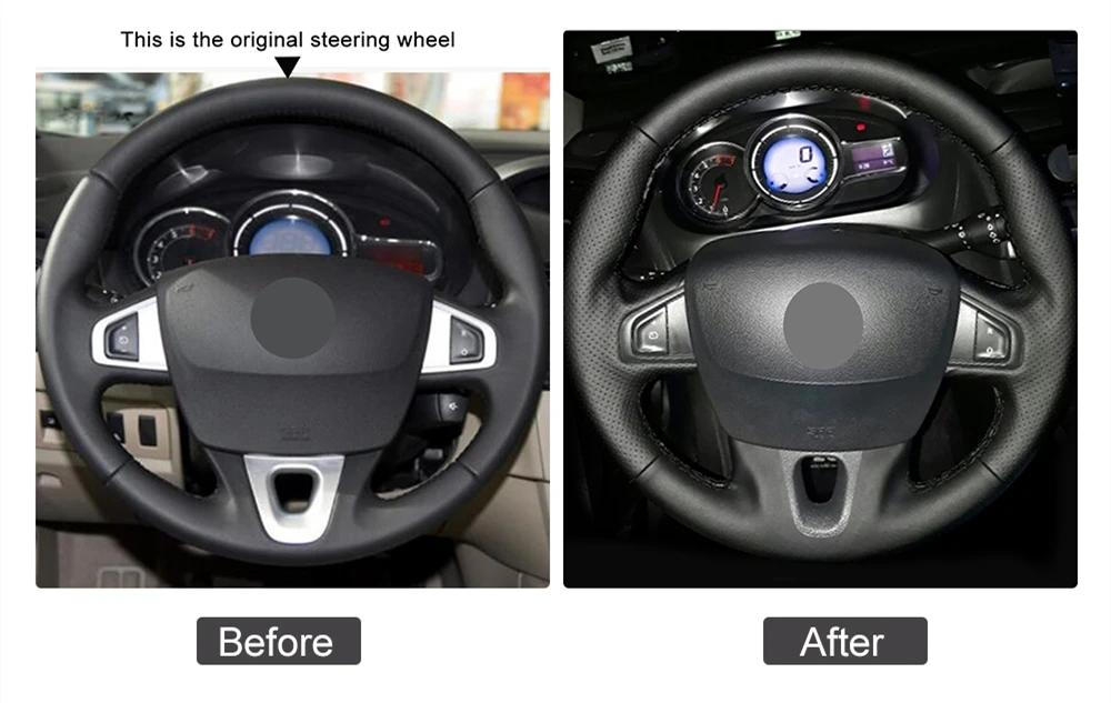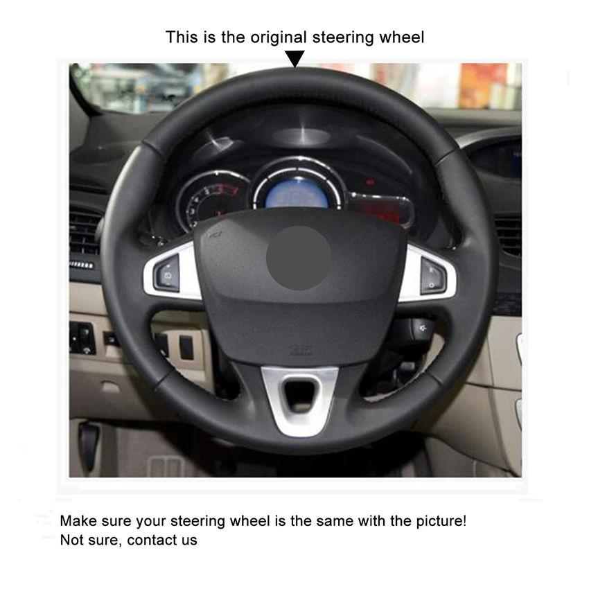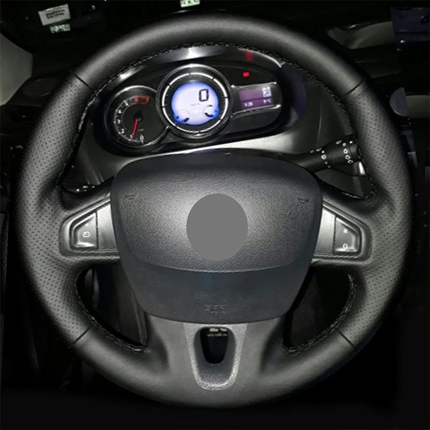 Черная искусственная кожа Чехол рулевого колеса автомобиля для Rena...