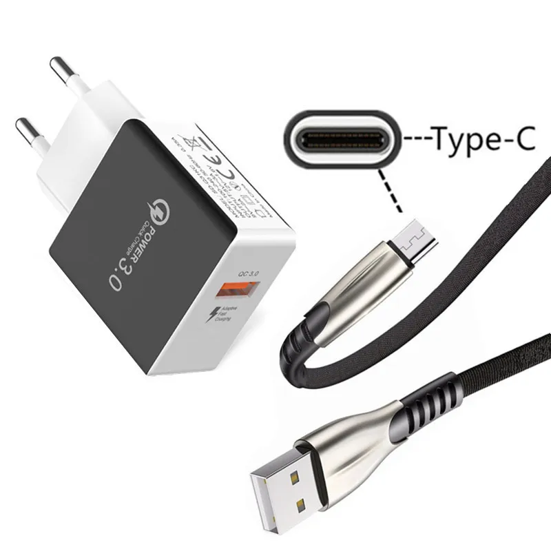 Быстрое зарядное устройство QC 3,0 USB Type C, зарядный кабель, ков...