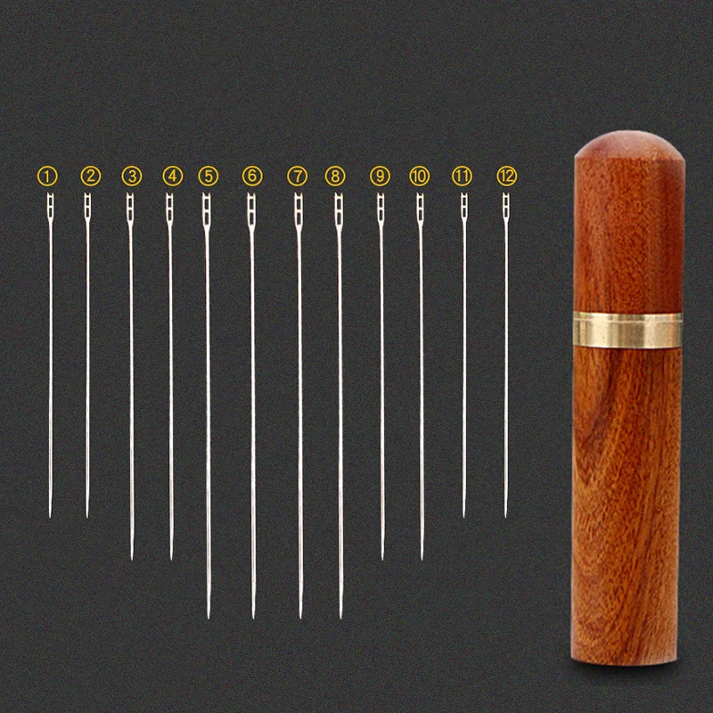 Вариант 2: 12 швейных игл (серебристый/золотистый) + 1 коробка для хранения (коричневый/темно-коричневый)