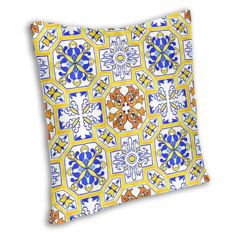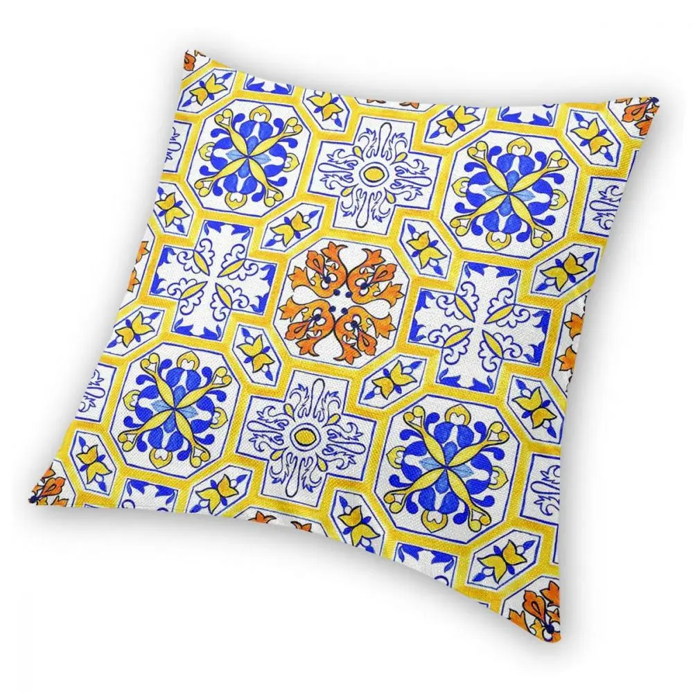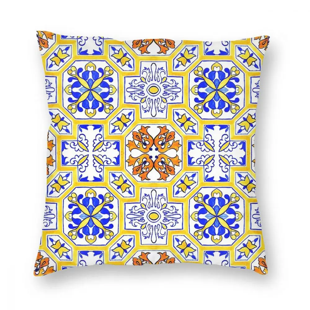 Португальская плитка Azulejo, квадратная подушка, чехол из полиэстера, декоративная подушка, синий фарфоровый узор, 45*45 см, наволочки