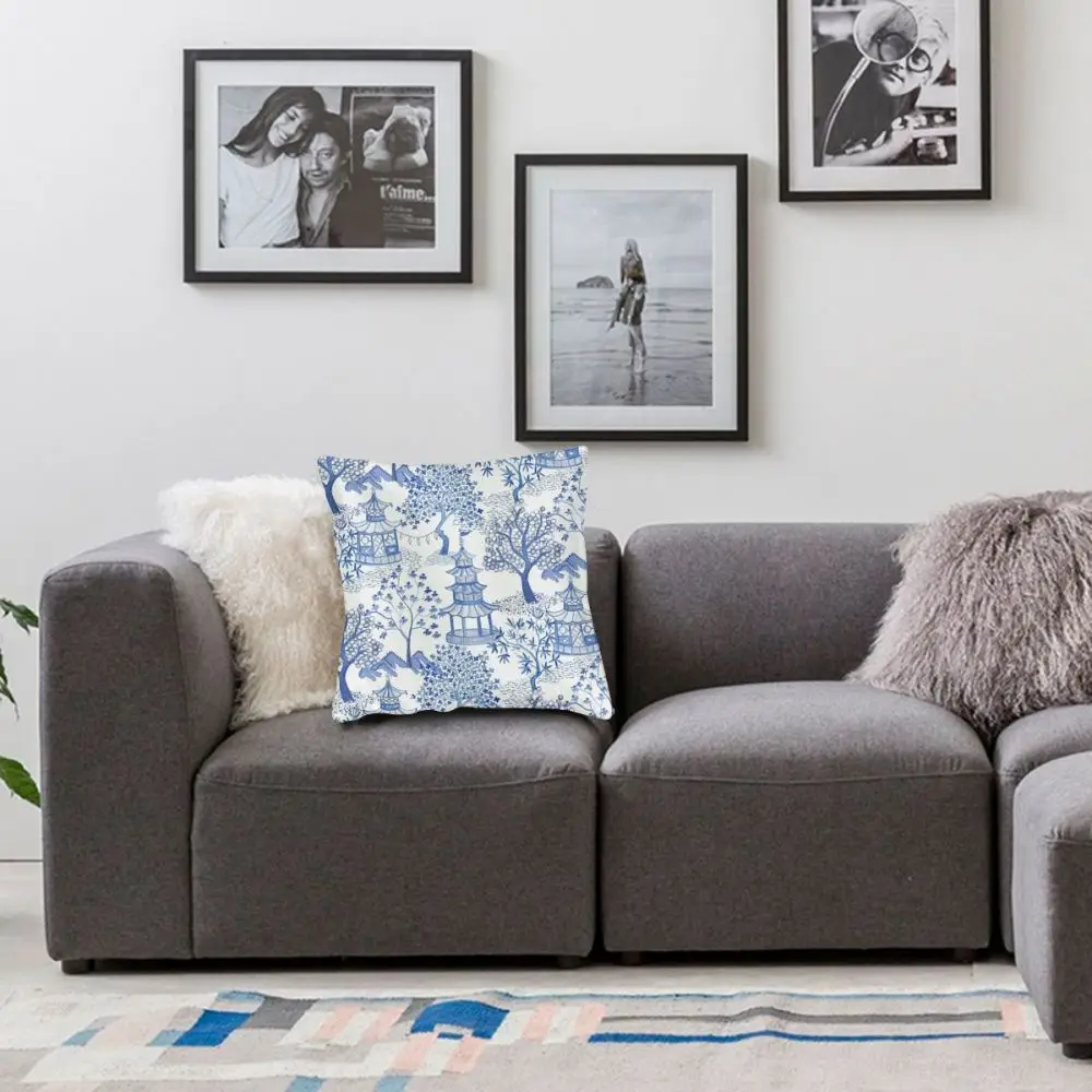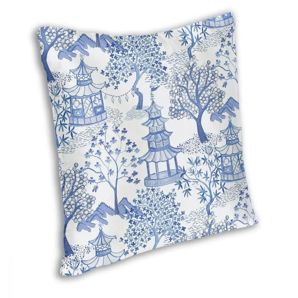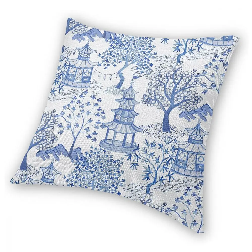Винтажные наволочки на диванные подушки Blue Delft с изображением пагоды леса