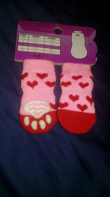 У меня есть маленький Йоркшир. Он был поврежден ногой, и сначала я купил очень маленький размер S. Теперь м и количество волос на ногах трудно. Я рекомендую Большие размеры даже для маленьких собак. Качество очень хорошее. Нескользящая подошва. Пакет из 4 единиц.